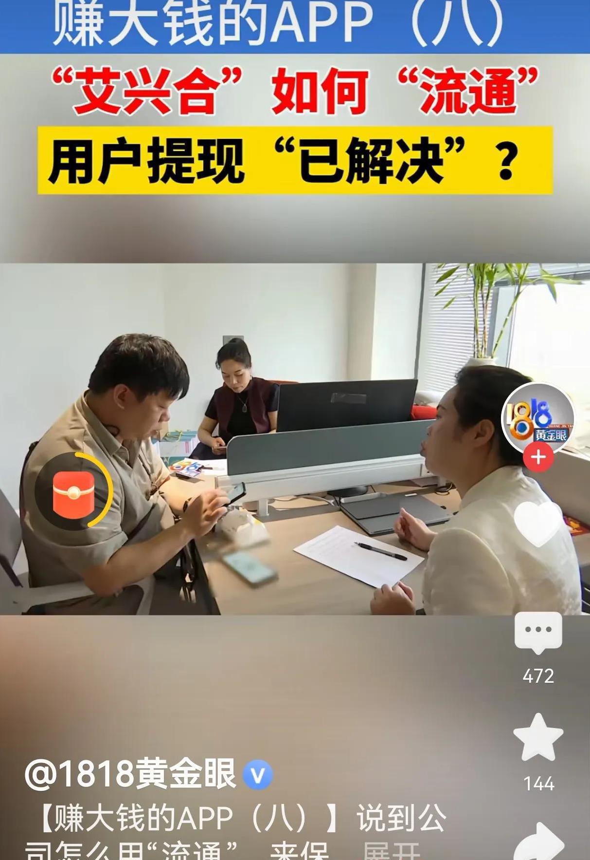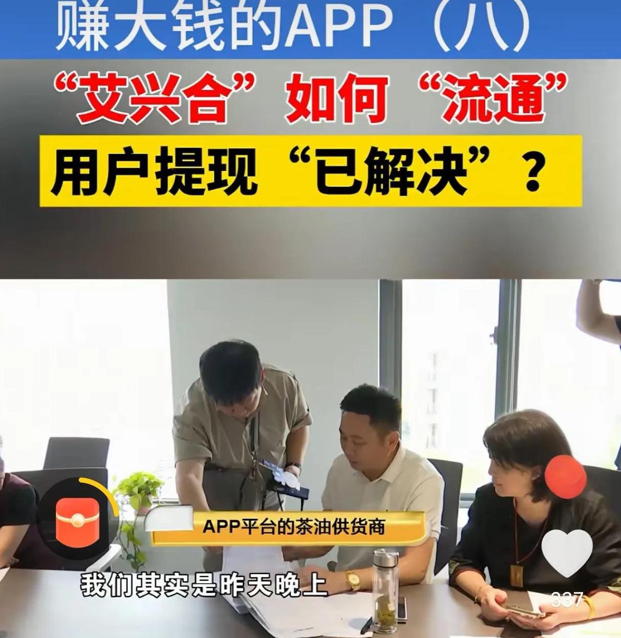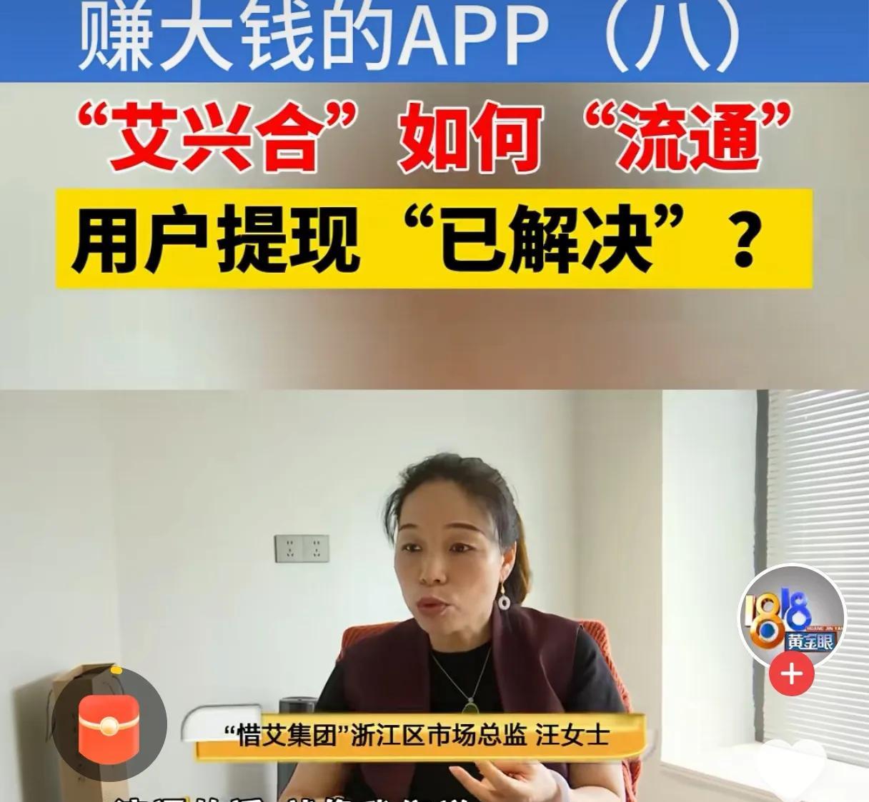 明目张胆地搞融资,这位汪女士向记者推荐“艾兴合”的APP,鼓励大家下载,然后把客户家里的钱从银行里取出来投进这个APP里产生高利率,投得越多积分就越多,积分可以用来买商品,而投入的钱随时都可以提现,这位汪女士说这个集团公司是创新型,创新型自然很多人不了解,记者连续采访了几位客户他们都说提现失败,记者连线汪女士她说系统问题要修复需要一周,而她们集团公司的数字配送中心客户正在维权!网络发达的今天骗局千变万化,只要你被骗一次你就很难再站起来!