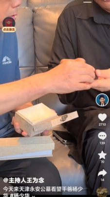 王为念回国就去永安墓地去看干爹杨少华,三大爷还把老爷子用的檀木给王为念,还给一把扇子,上面写着杨少华。 三大爷说:“他给老爷子感情太深,王为念说我只要有点时间就来看老爷子。 王为念对干爹是真的好啊!