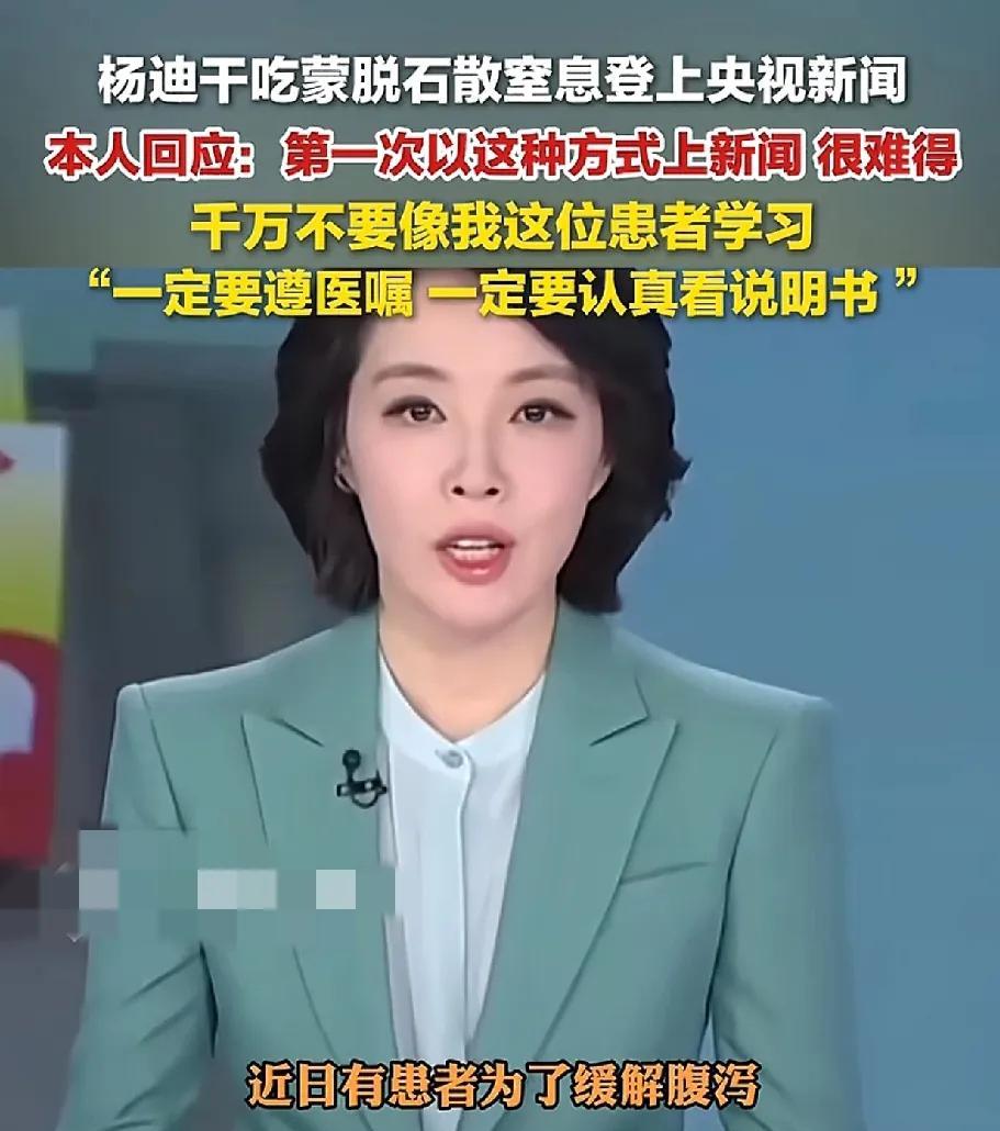 有朋友对杨迪说:“你上央视新闻了!”杨迪一听立刻激动的掏出手机查看,结果发现自己是被当做反面教材上了央视新闻。 他上央视新闻的事情是,他之前腹泻,为了省事干吃蒙脱石散,然后导致药的粉末他他的鼻腔咽喉都给堵了,让他窒息了3秒。 央视新闻觉得杨迪的这个案例很典型,很值得拿出来给大家举例子,让大家不要效仿,所以就在新闻播报中说了这件事,且没有直接说杨迪的名字,而是用的患者,也算是给杨迪留了面子。 没想到杨迪的朋友看到后,立刻就告诉杨迪了,而杨迪一开始还沾沾自喜,拿出手机打算拍个视频,结果看到拿他当负面案例后,他脸上的笑容瞬间就消失了。 不过杨迪和央视新闻的这波配合,也算是让更多人知道蒙脱石散不能干吃,一定要用温水冲服。#头号创作者激励计划#