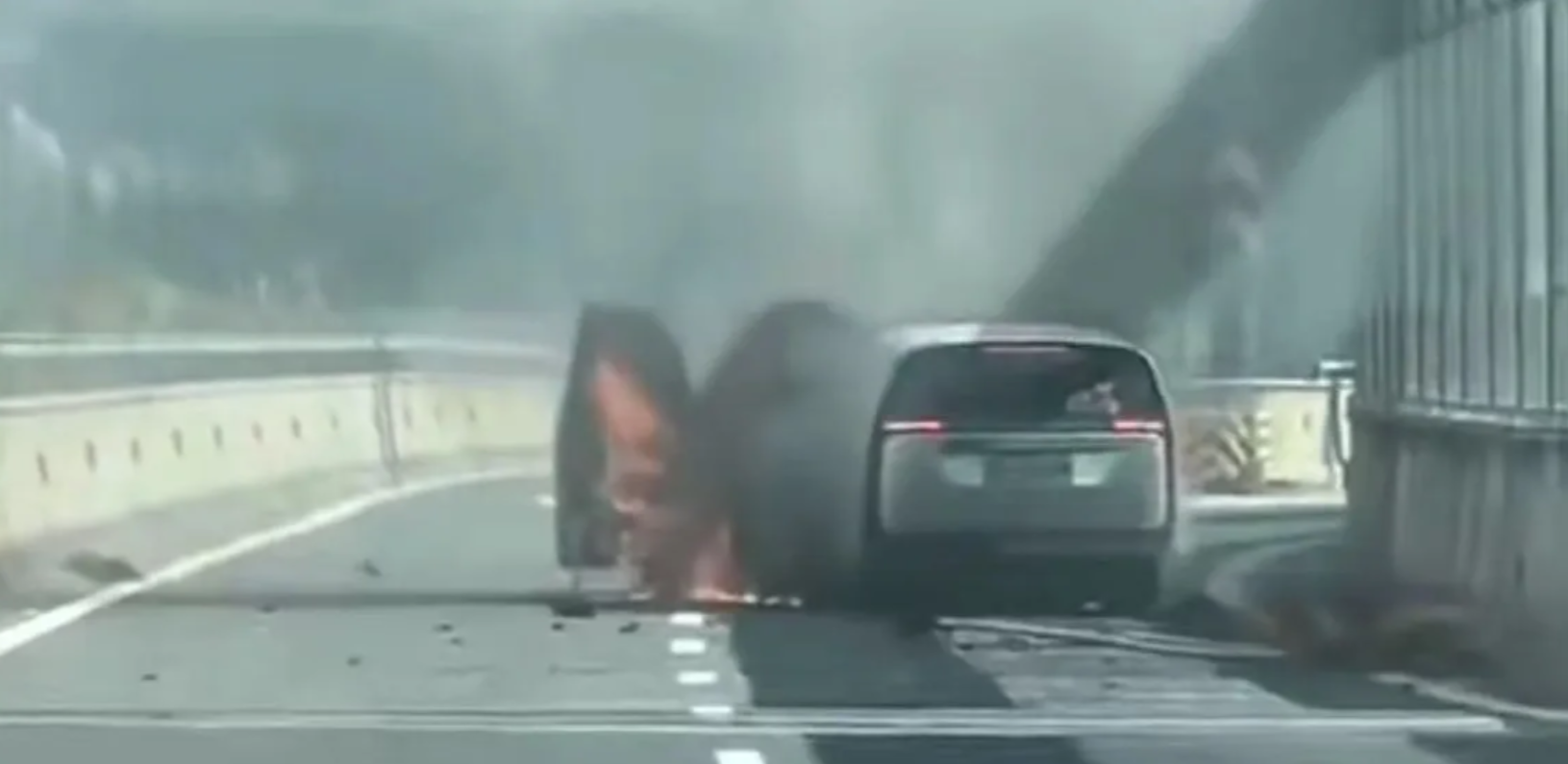 家人们快来看!理想MEGA杭州高架碰撞起火,火势凶猛黑烟冲天!