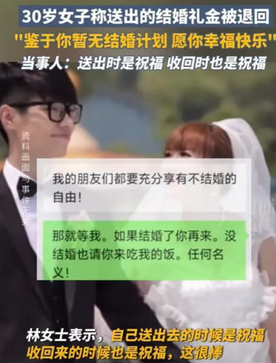 30岁女子暂没有结婚的计划,朋友退还了3年前她给的2000元礼金,还祝福她“幸福快乐”,女子感动不已,晒到网上,网友纷纷表示:我也想要回来!