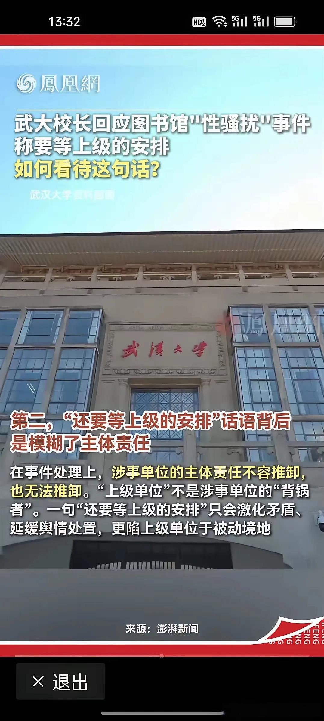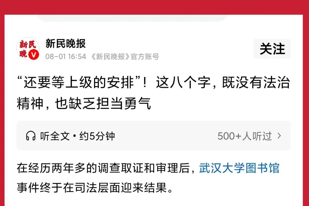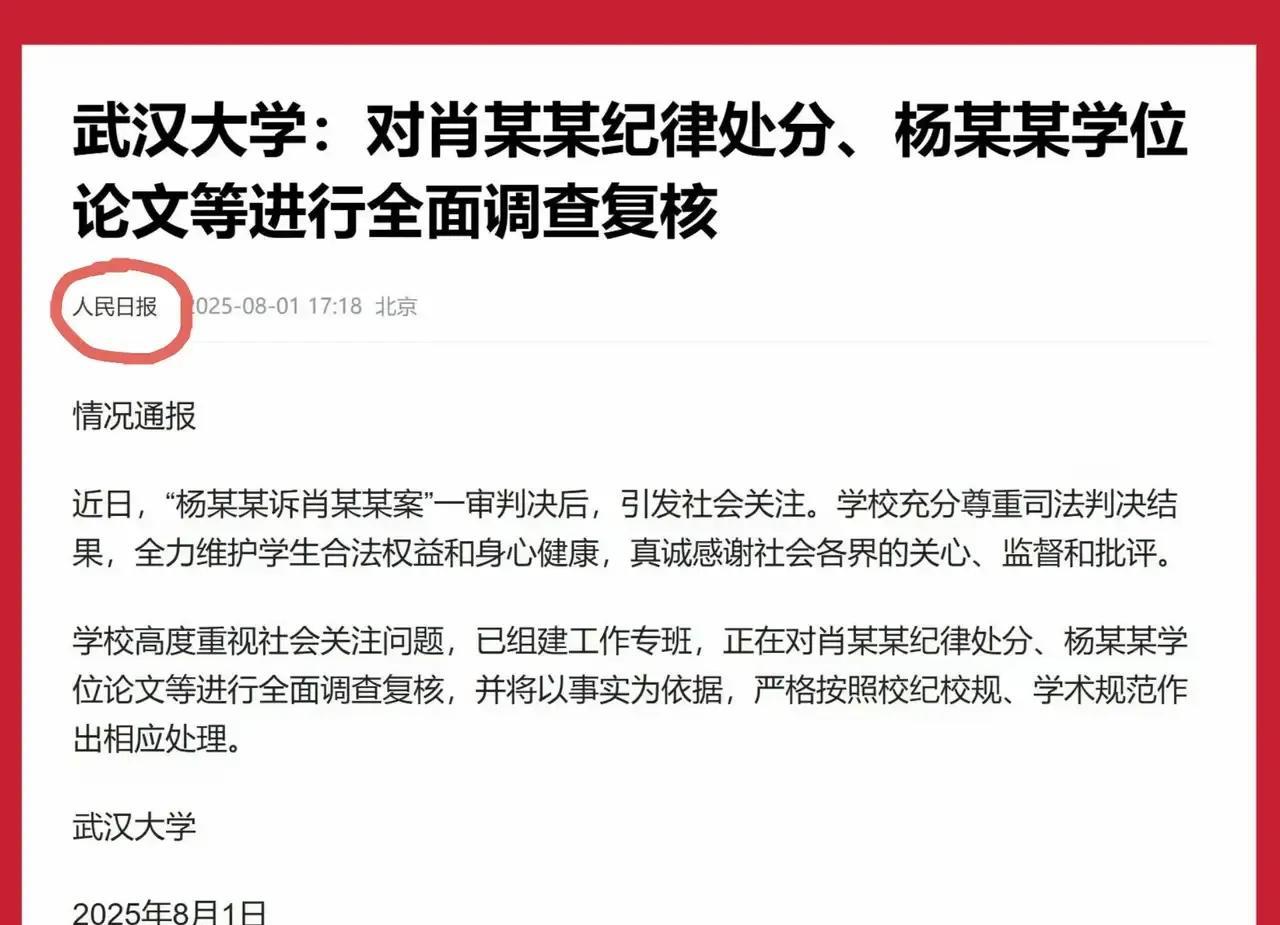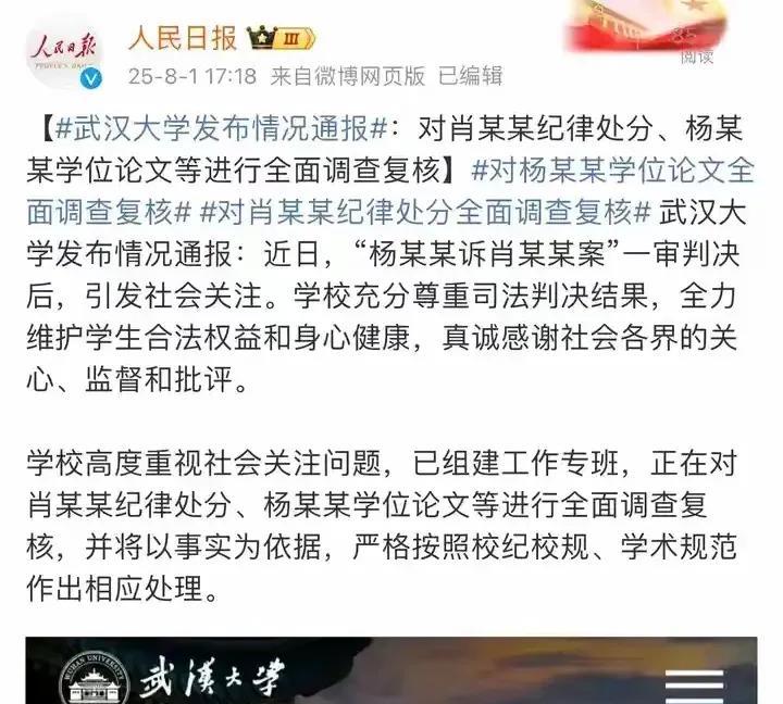 武汉大学张校长的那句“等上级安排”引发深思,有人认为这是无能力的表现,但我认为应该更为全面分析这个问题,不能草率下结论。 2025年7月31日晚间,针对“武汉大学图书馆男生涉嫌性骚扰指控被法院驳回”一事,武汉大学校长张平文在回应记者关于何时公布处理结果的问题时称“还要等上级的安排”。我解读到10个意思: 当初处分肖同学,武汉大学很及时,2天就公布了,现在为什么差不多半个月了,武汉大学还没有公布撤销肖同学的处分并以“等上级安排”来回复网友的疑惑,因此有人认为这是无能力的表现!事实上是这件事在全国的影响实在大太了,说不准上级也已介入了,所以他们要和上级一起调查处理,这说明这不是武汉大学的事了,等待更权威的部门来查这件事也是可能的,总不能自己查自己吧!这才有了“等待上级安排”。 当然就这件事@英雄拒绝黄昏 认为武汉大学的张校长魄力不够,建议调离。 免责声明:文章的描述过程、图片均来源于网络,此文旨在倡导社会正能量,不存在低俗等不良引导。如涉及版权或者人物侵权问题,请及时联系 @英雄拒绝黄昏 @英雄拒绝黄昏之廖志伟 ,我们将第一时间删除内容!如有事件存疑部分,联系后会即刻删除或修改。#武汉大学诬告案# #武大性骚扰案# #武大处分风波# #武汉大学网暴# #武汉性骚扰# #武大性骚扰# #武汉大学肖同学#