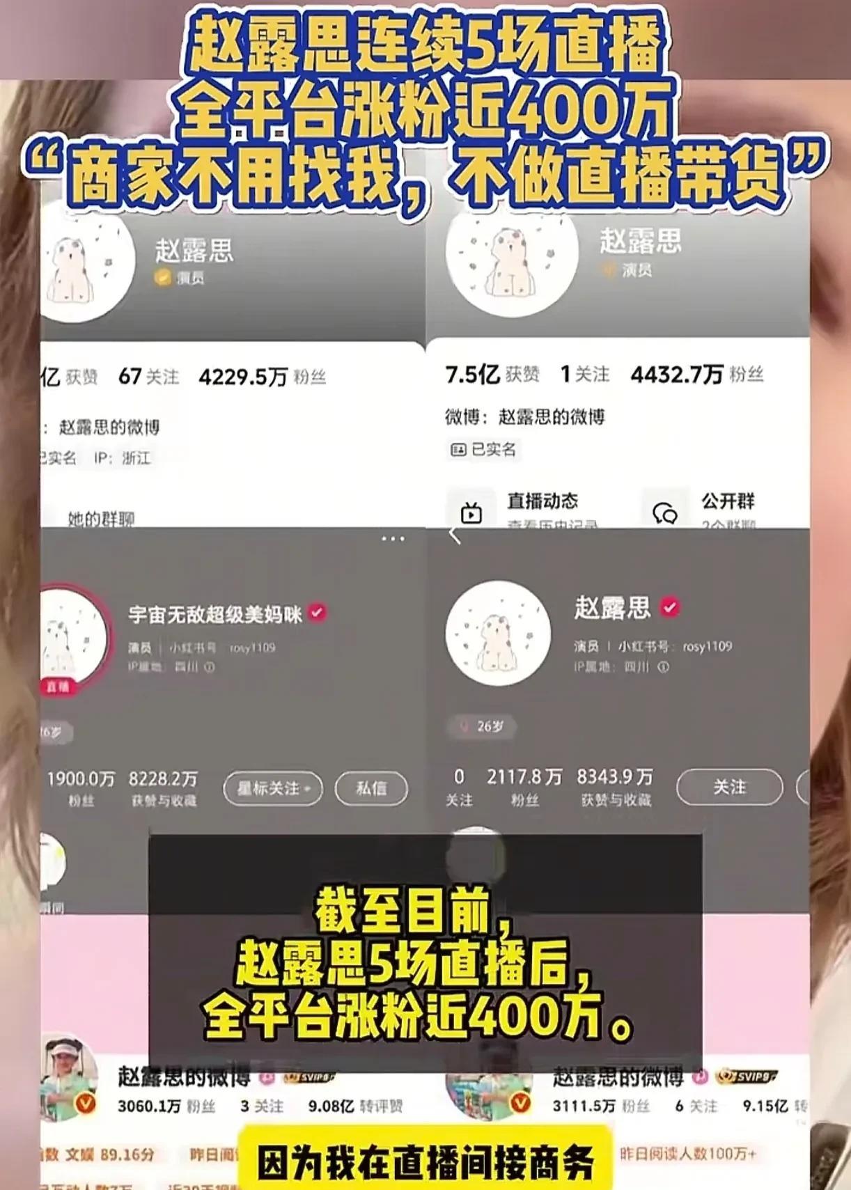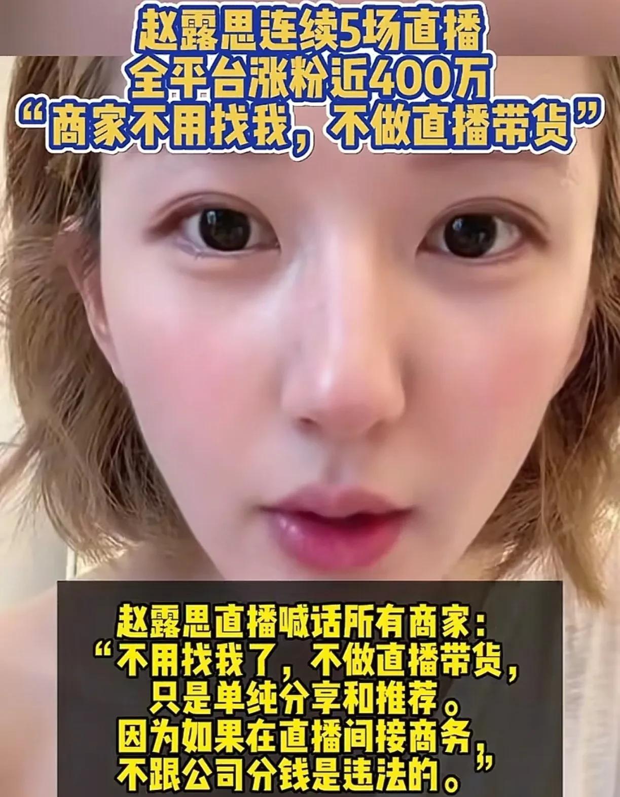 赵露思的直播动机我算是看明白了。 她直播不是为了挣钱,全程都没开打赏功能,也表示拒绝所有带货和广告。 也不是为了流量,因为她本身就是这次流量体。 那她直播为了什么? 我觉得就是想恶心公司,还记得前两天的声明吧!公司让她不要在网上发表内容,以免引导公众猜测,还让公众不要打扰她。 公司不让做,那她偏就要做了,她已经连续直播5天了,以前有戏拍都没见她这么勤快直播的。 网友表示:赵露思就算退圈,这个颜值和人气,不管是当网红自媒体,还是干任何事,多的是退路。 这话说的没错,就她直播这几天,只要推荐东西都被抢光,商家都发自内心感谢她的帮助。 也许,这就是她直播的目的吧!#头号创作者激励计划#