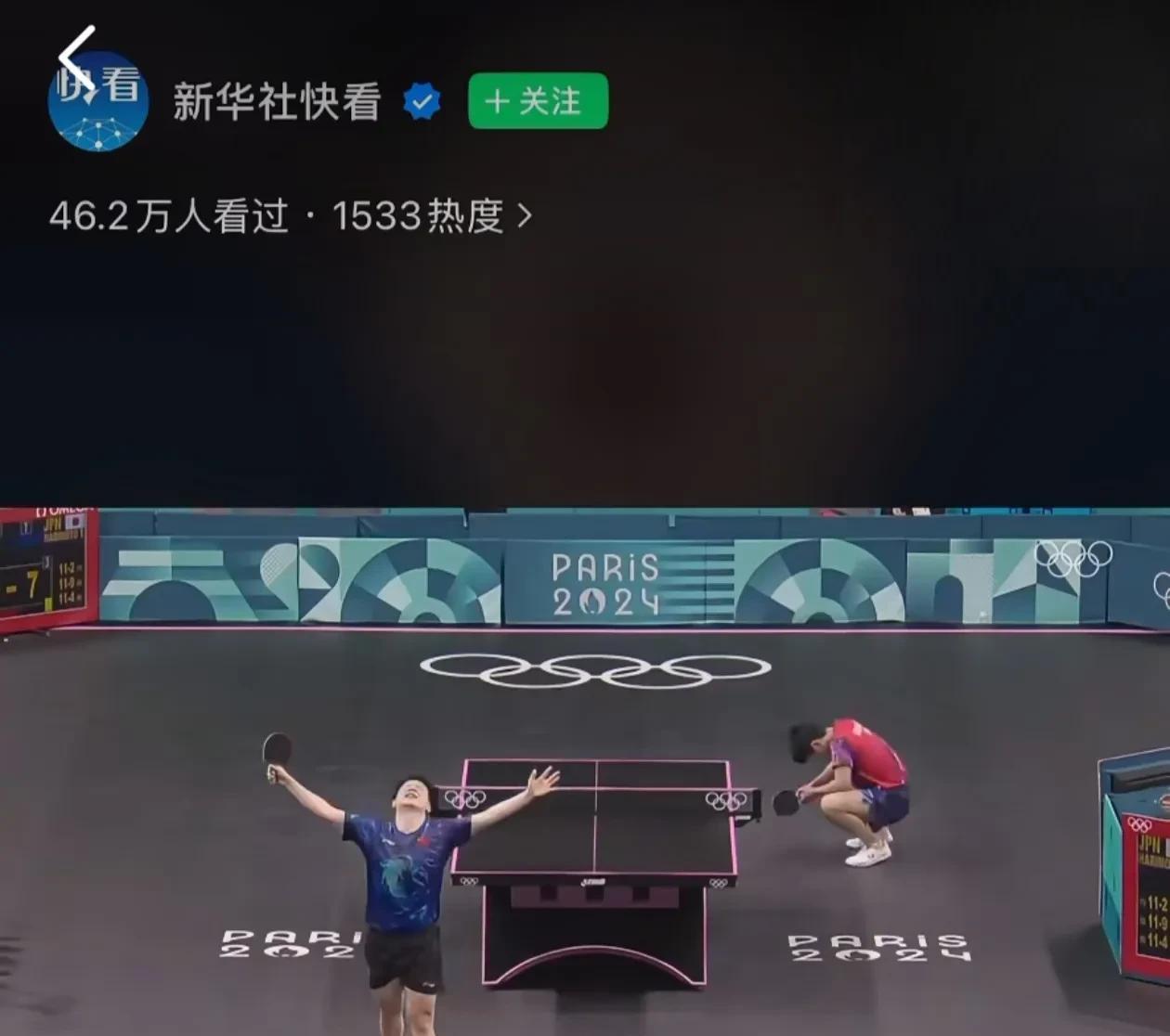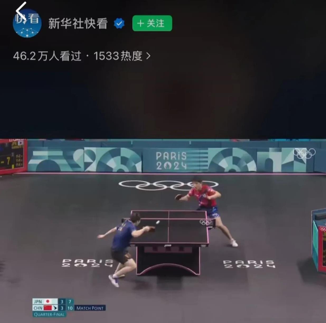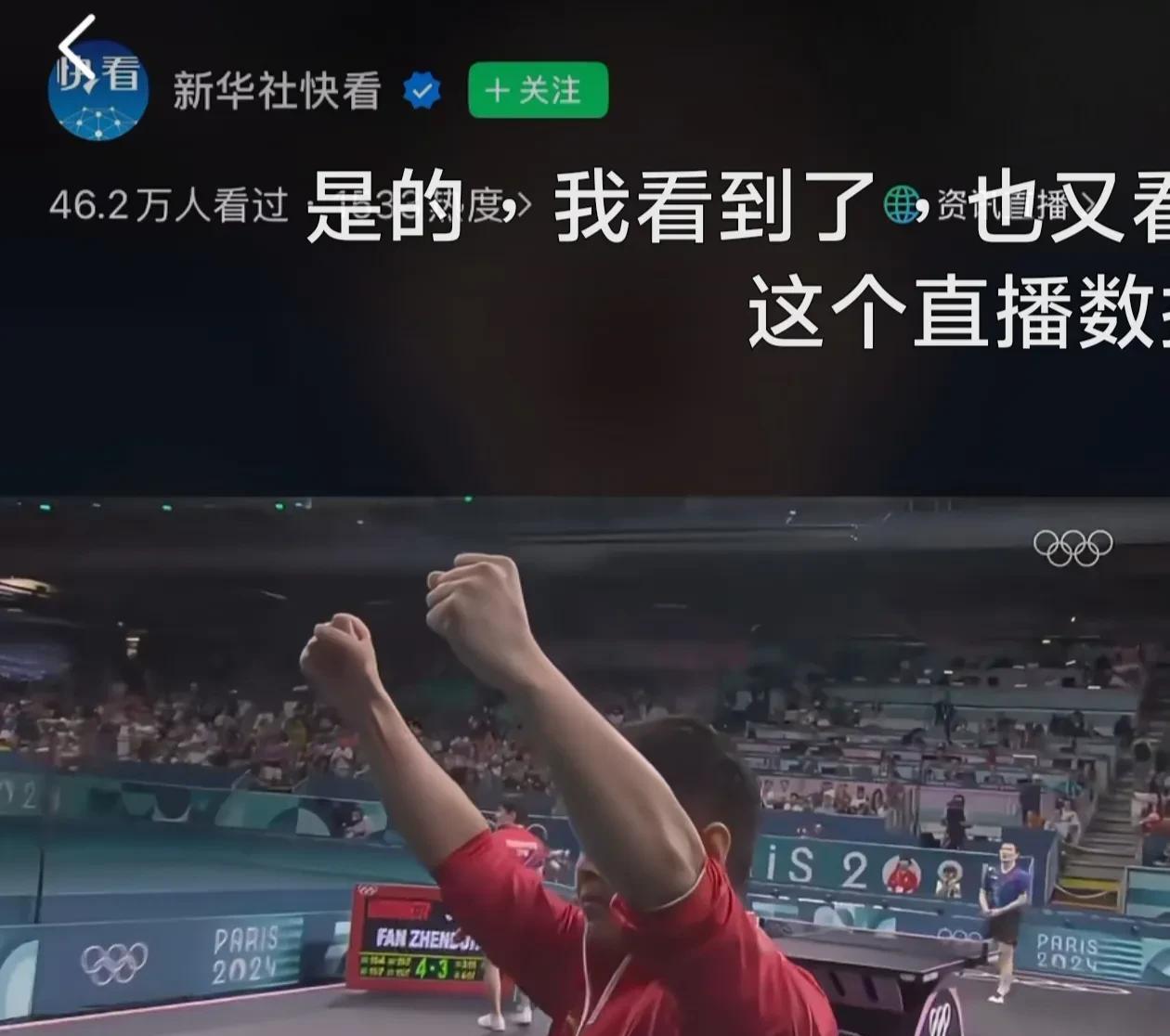 昨晚半夜12点新华社视频号重播巴黎奥运会樊振东对张本智和那场1/4决赛,想不到在