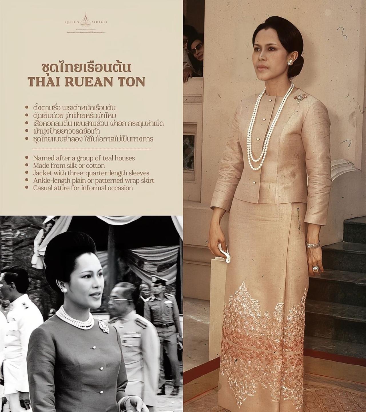 诗丽吉太后雍容华贵,可以用倾国倾城形容 王太后诗丽吉,察觉到西方影响下泰国传统服饰式微、民族服装不明,为守护与弘扬泰国身份,她构想出融合皇室传统与现代时尚的服饰,由此催生了泰国 Phra Rajaniyom 的八种风格。