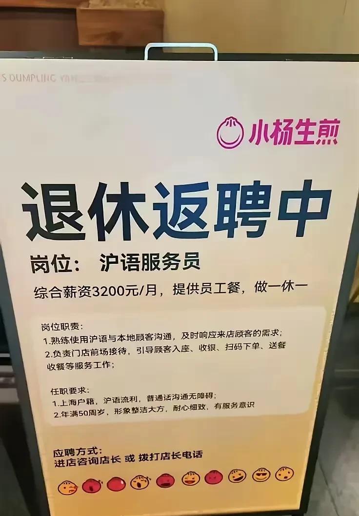 大变天了!年轻人即将大批失业,退休人员重返职场,反倒成了‘抢手货’! 近期,上海一煎包店特别反常,别家店都是招年轻的员工,这家店却要招50岁以上的退休人员,究竟是为什么呢? 原来是因为9.1日国家有新政策,任何用人单位,必须要为自己的员工缴纳社保。 市场竞争激烈,本身利润就很低,如果还要为员工缴纳社保,根本就赚不到钱。 怎么办?店长决定把原来的员工辞退掉,招一些退休后的阿姨,这样一来,就不需要给她们交社保了,节省了成本,保证了利润。 商家依赖“不交社保”的退休人员来维持微利,这种“低成本”模式真的可持续吗?