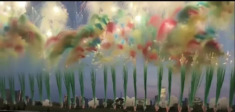 这世运会烟花 色彩的现代感和天空交相辉映, 太别致了...![赞][赞]