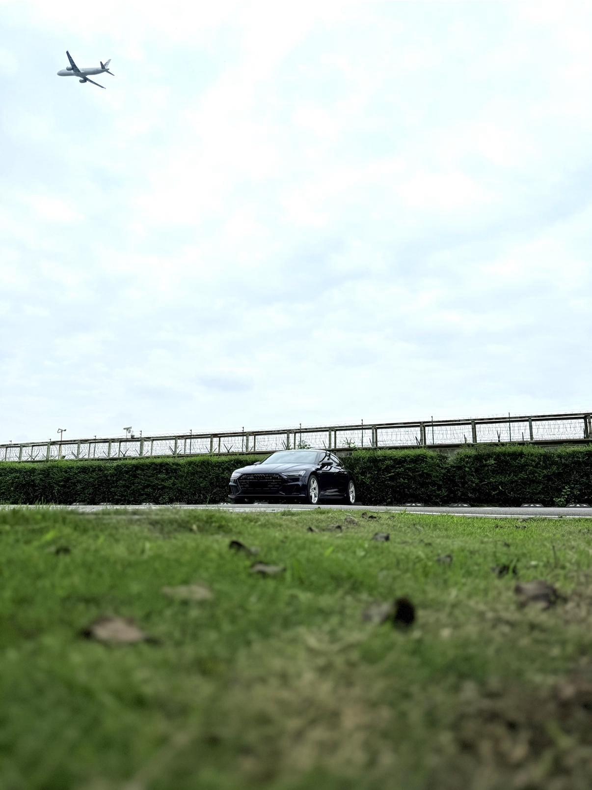 恰逢这次Dcar汽车光影大赛活动,整理了下之前用手机给奥迪A7L拍摄的光影照片。 先简单说说上汽奥迪A7L这台车,奥迪A7L在标准版A7的Sportback溜背造型基础上进行了本土化改造,车身长度增加至5076mm,轴距达到3026mm。车顶线条从B柱开始采用更为平直的延伸设计,后门长度明显增加以提升后排空间,C柱三角窗面积扩大37%。保留无框车门设计的同时,后门窗框线条调整为传统三厢轿车结构。尾部采用全新设计的加长后悬,贯穿式OLED尾灯组宽度增加82mm以匹配加宽的车体视觉比例。 有些人认为加长后没有了溜背就没有灵魂,不过我认为加长有加长的好处,这台车虽然争议很大,照片中的加长尾部可能看起来不协调,但是实车不管从哪个角度看都是真的帅,所以想要拍出好看的A7L确实还是有挑战,拍摄角度很重要。 前阵子恰逢天气不错,我开着A7L去双流空港体育公园露营,这边很好停车,场地很宽敞,环境也不错,还遇到有给汽车拍摄的专业团队在这边拍车。这边草地很很干净,把车停好坐草地上发现A7L的前脸很帅气,特别是从这低角度看过去,这宽体低趴的车身看上去更加帅气,于是忍不住咔咔咔拍了几张,以草地为前景,把远处的A7L用长焦镜头拉经特别出片。这边靠近双流经常,每隔两分钟就有一架飞机飞过,拍摄的时候正好碰到一架,于是赶紧按下快门,让A7L和这架波音同框。因为手机不是特别擅长长焦拍摄,飞机显得很小,反倒把A7L衬托的帅气。拍这个四个车门大鹏展翅的照片也是看到这边的飞机突发的念想。A7L的无框车门,看上去运动感十足,忘记把车窗摇下来再拍几张了,之前看到过车友拍的摇下车窗的无框车门照片真的很帅!后面几张照片是开A7L去九红风光路草原上面拍的,这边路况很好,A7L在这种路面上面驾驶真的很有乐趣,当然也很出片。