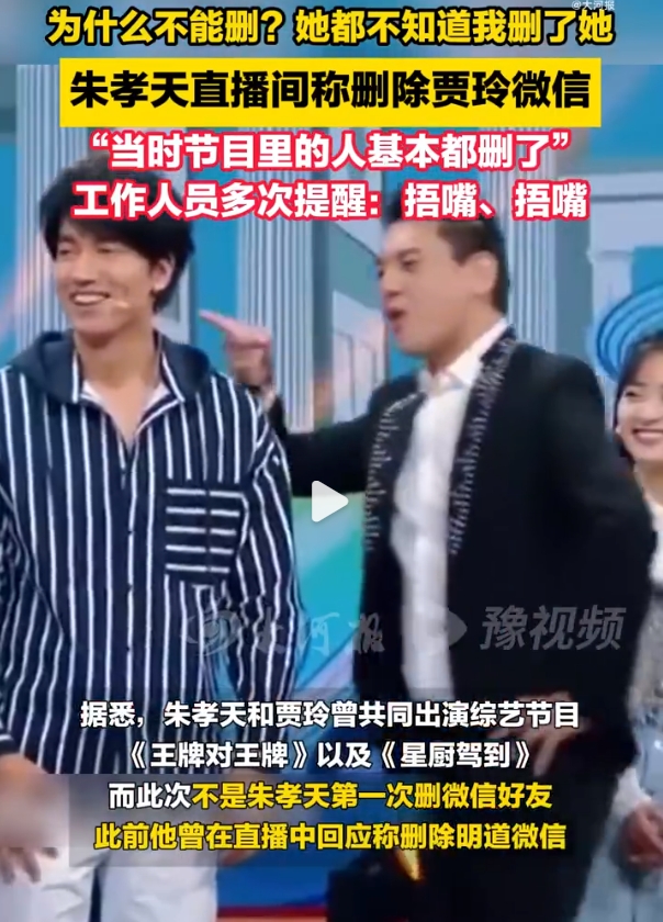 近日,男星朱孝天在直播时,自曝自己删除了贾玲的微信,还无所谓的表示“我为什么不能删除贾玲?她都不知道我删除了她。”