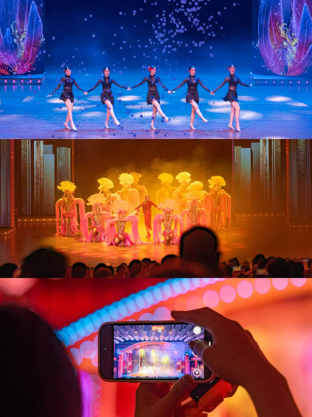 4️⃣观看各类剧场演出(白天的两场演出分别是红色婚礼和摩登时代,晚上是火秀和归途,每一场都是精心策划,尤其是摩登时代,不论是舞台的设计还是演员的舞蹈,都很震撼)