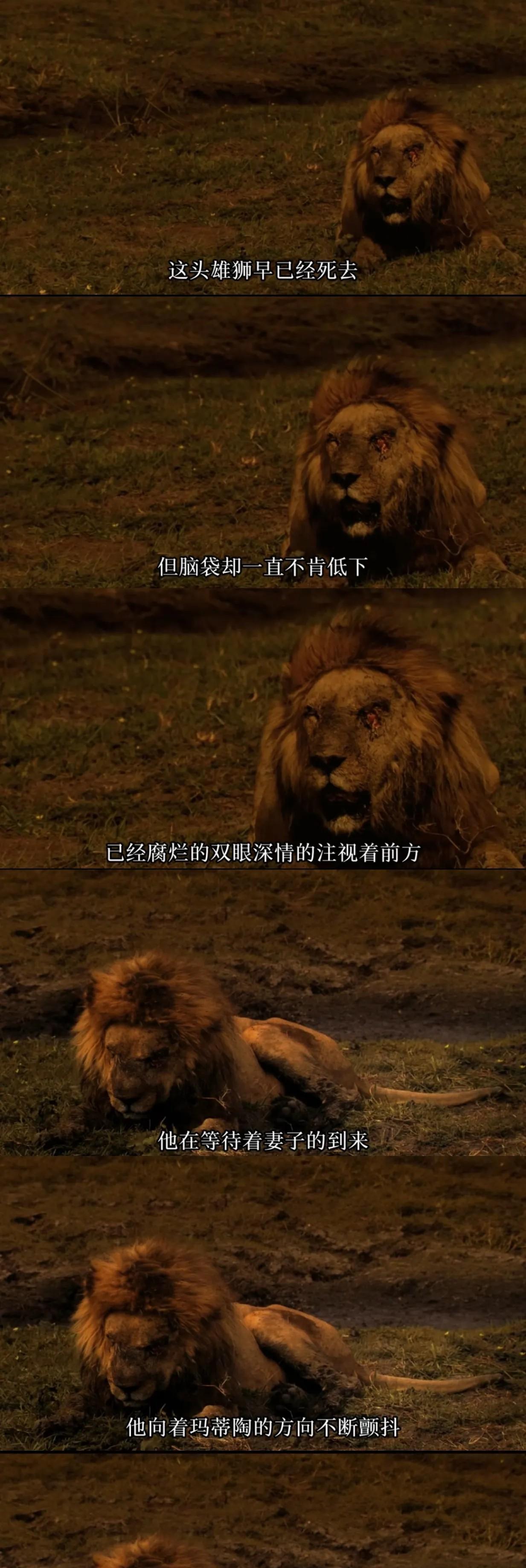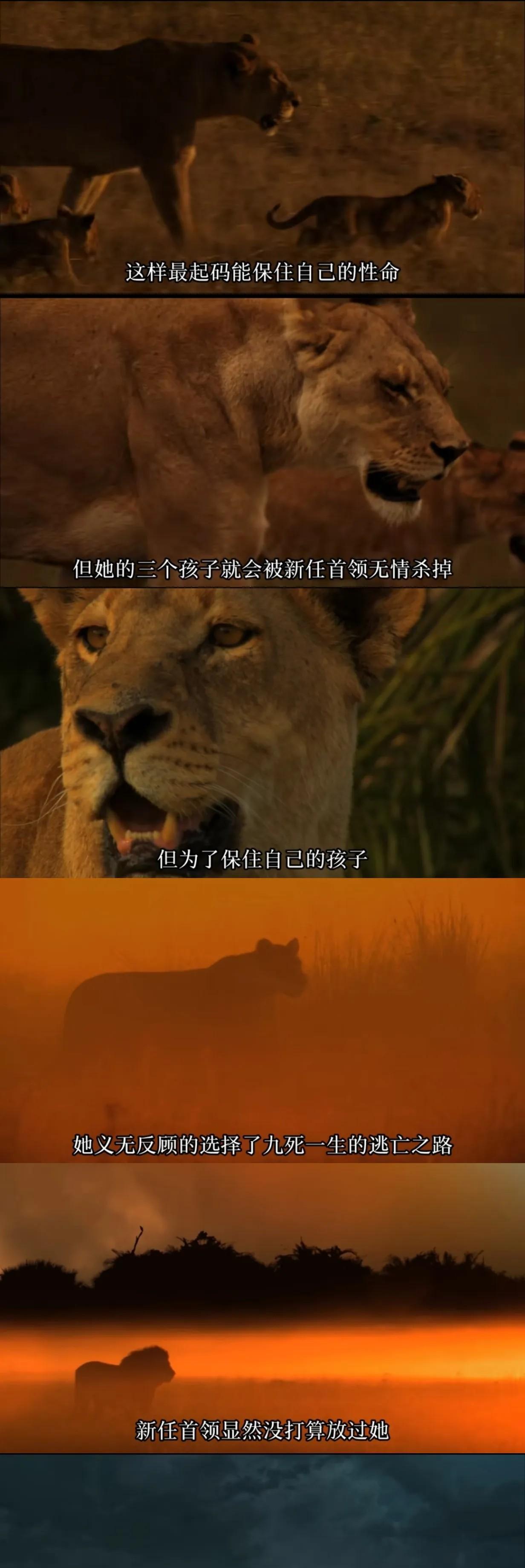这是一个有关狮子既悲伤又让人愤怒的故事,众所周知, 在狮子的世界里是一夫多妻制。 但雄狮阿波罗和母狮马蒂陶却是个例外。它们选择了一夫一妻制,彼此忠于对方。它们诠释着彼此忠诚不离不弃的爱情。它们彼此之间的感情非常的深厚。它们有三个孩子,过着世外桃源般幸福的生活。 它们彼此一夫一妻制独特的生活进入了摄影师的眼中,令人类感到不可思议。摄影师为了测试它们是不是真的一夫一妻制,会不会不离不弃,雄狮面对强大的敌人,是否会抛妻弃子?故意引导别的狮群去它们的领地,特意制造矛盾,狮王阿波罗一对二头狮王,马蒂陶为保护三个孩子勇斗狮群母狮,战斗结束后阿波罗身受重伤,浑身伤痕累累,狮群的母狮有一只被马蒂陶弄瞎了一只眼。这一场战争,堪比生死之战。悲壮又血腥。 马蒂陶好不容易逃出生天,马不停蹄的寻找自己的丈夫。它在大草原上一遍又一遍,呼唤自己的丈夫。却毫无回应。终于马蒂陶远远地看到了自己的丈夫阿波罗。阿波罗已经身负重伤。双眼已瞎,其实它早已经死了。但是为了能够见到妻子最后一眼,确保妻子还安全的活着,它昂起高贵的头颅,愣是坚持了十天。用最后一丝气息,执着的等待妻子。直到它听到妻子的声音。确保妻子安然无恙,它终于放下心来,低下它高贵的头颅,放下对妻儿的不舍,终于离开了这个残酷的世界。 失去丈夫,马蹄陶无比悲伤,可是它的世界容不得它悲伤。它还有三个孩子要保护。它甚至连难过的资格都没有。它要为生存而战。面对马蒂陶的有两个选择,第一个选择是投降敌人,可以保命。但是它的三个孩子就要被敌人杀死。显然,为了它的三个孩子,它选择了第二条九死一生的路,逃亡。 马蒂陶带着三个孩子逃命途中,一直被敌人追杀,在过河的时候,一只小狮子被鳄鱼吃掉了,另外一只被野牛掰断了脊椎和腿,一天当中,玛丽陶瓷失去了丈夫和两个孩子,仅剩的一只也走丢了,马蒂陶前有野牛,后有敌对狮群,它的世界四面楚歌。 它一次又一次的被它的敌人银眼追杀。银眼誓要杀死它的孩子。以除后患。它为了保护孩子,化作一道闪电,迸发出强大而惊人的力量。它将银眼打翻。但它并没有对银眼下死手。 马蒂陶最后一个孩子失而复得,令它悲欣交集。面对敌人,它不卑不亢,为了孩子,它化身复仇者。那一只牛角上沾满血迹的水牛首领,一定是杀死它孩子的凶手。面对毫无胜算的体重悬殊,马蹄陶不顾生死,也要与水牛首领血拼到底。虽然马蒂陶让水牛首领挂彩,但依然奈何不了它。 马蒂陶面对一次又一次的狩猎无果。依然不肯放弃。它学会了战胜对水的恐惧,在水中捕捉水牛。可是,即便是成功的狩猎,不是被鳄鱼瓜分,就是被鬣狗抢夺。还有同类狮子不停的追杀。保护孩子,面临着要被饿死。出去狩猎,面临着孩子要被杀死。一次马蒂陶在狩猎的过程中,水牛偷袭它的孩子。马蒂陶十分警觉,千钧一发之际,冲到了孩子面前,但是体重的悬殊,马蒂陶显然不是水牛头领的对手。眼看着马蒂陶毫无胜算,它的死对头银眼突然出现。两只母狮仅仅交换眼神,便心领神会。一起对抗水牛首领的攻击。它们共同打赢了这一场胜仗。保护了孩子。 马蒂陶用它的勇猛无畏,征服了它的死对头银眼。有了银眼的加入,银眼的整个狮群都认马蒂陶为首领。马蒂陶用它强大的狩猎本领,勇敢无畏的精神,征服了整个狮群。在它的带领下,它们过上了幸福的生活。 而马蒂陶唯一的孩子,这个狮宝宝是以后大名鼎鼎的莫伦狮王。大概,这也是对阿波罗 狮王在天之灵最好的慰藉。阿波罗狮王是个情种,与马蒂陶坚贞不渝的爱情,令无数人泪目。 阿波罗师王为保护妻儿悲壮的战死,至死,都在惦记妻儿。为了等待看妻子最后一眼,居然坚持了十天不死。直到听到妻子的声音,才终于放下对妻子孩子的眷恋,离开了这个世界。而妻子马蒂陶更是令人感动。它的世界如此的悲壮。上帝对它并没有丝毫的怜悯。一天之内失去丈夫两个孩子,唯一的孩子又失踪。可是,只要有一口气,它就要为自己的孩子战斗下去。它让我们看到一个伟大的母亲,强烈的母爱,令它有战胜一切困难的勇气。当它看到孩子被敌人杀死。它又豁出性命,化身复仇者,要与敌人决一死战。当最后一个孩子失而复得,是它活下去全部的动力。变得勇往无敌。 当我看到马蒂陶的故事,内心久久不能平静。这个世界并非岁月静好。 哪怕是一夫一妻制,彼此深情的夫妻,却依然要面对命运无情铁蹄的践踏。最爱的人为保护自己而战死。哪怕逃出生天,也来不及悲伤。悲伤是弱者无能的悲鸣。马蒂陶面对的还有无数的困难。在面对放弃孩子,自己就能活的生死选择上。它毫不犹豫的选择了九死一生的道路。为了孩子能活,它顾不上自己所有的苦难以及生死。也许它知道,仅凭它一己之力,无法护自己的孩子周全。它不知道结果如何,但只要它还活着,只要它还有最后一口气。它就会为它的孩子战斗到底。豁出命来保护自己的孩子。玛丽陶让我们看到了母爱的伟大。爱不分物种。动物的爱甚至于超越了人类。 #记录我的2025#