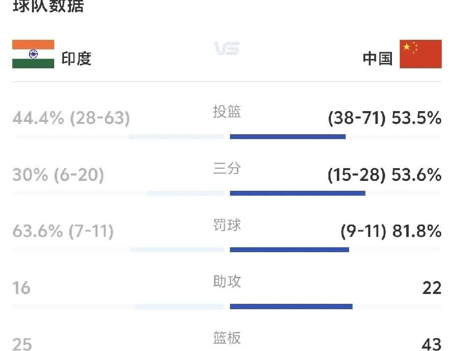 100-69大胜印度31分,中国男篮拿下亚洲杯第二场胜利,第三场将对阵约旦,大概率将会以三胜小组第一出线!! 本场比赛男篮六人得分上双,胡金秋更是拿下11+10的两双,胡明轩和赵嘉义拿下全场最高的17分。 从控球率到三分,再到罚球,乃至助攻和篮板男篮对印度都呈现出碾压的表现。 最终通过男篮众将的努力以100-69的比分战胜了印度。 让我们为男篮的胜利欢呼,期待他们拿下下一场的胜利,以全胜的姿态晋级淘汰赛。[点亮平安灯][来看我][来看我][点亮平安灯]