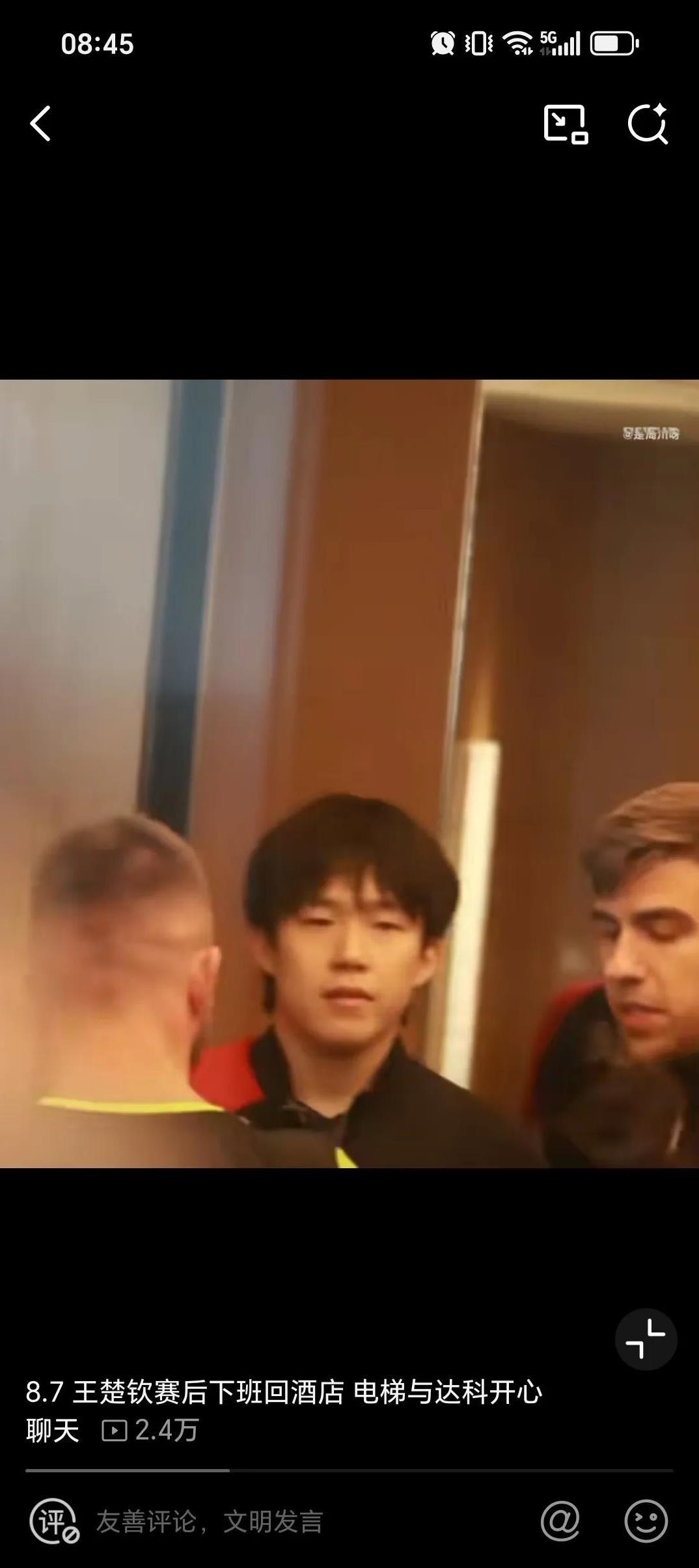 8月7日王楚钦下训和达科遇见聊天,两人聊的很开心,我想知道你们是不是用英语,牛冠凯在王楚钦后面认真听着他们说话,感觉王楚钦人员真好,国乒人员好,和外协运动员也是相处很融洽,这样好的运动员难怪大家都喜欢和他玩。也喜欢和他聊天,国乒人缘最好的应该就是王楚钦了