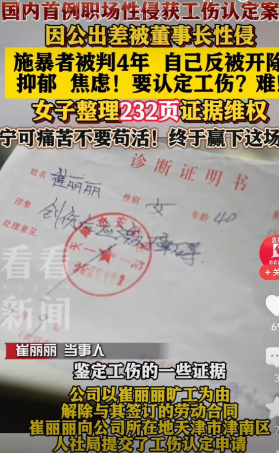 由于王某的公司开除崔女士没有足够的证据支持,加上崔女士因为性侵事件后患上了抑郁、焦虑等症状,医院认定证据非常充分,最后经过仲裁,认定崔女士的工伤性质,并且获得应该得到的工资和医疗等费用共计111万元。两年的维权之路,她终于得到了正义和公平。