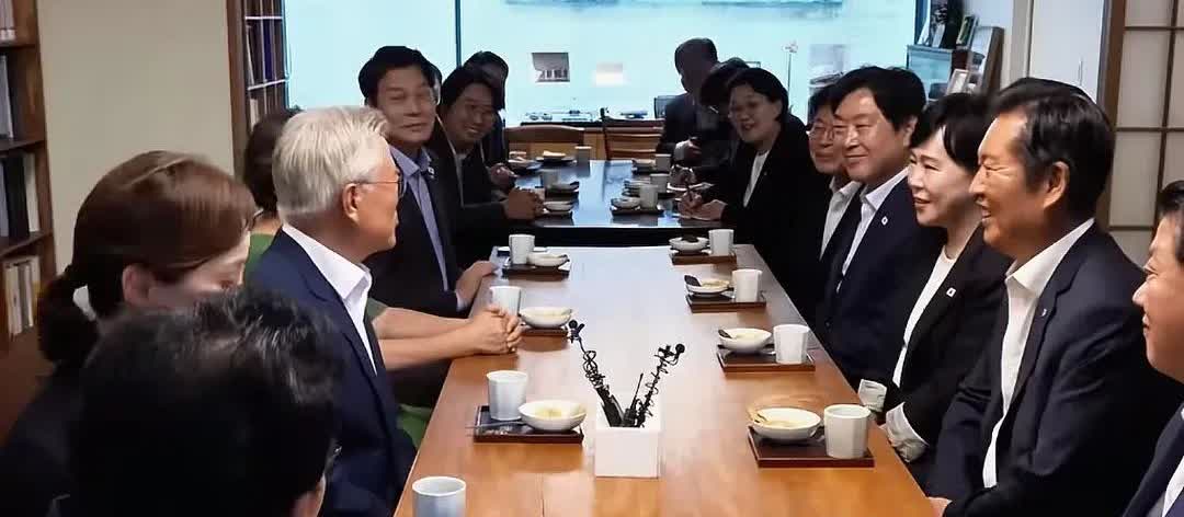 8月7日,韩国共同民主党新党首郑清来拜访文在寅,文在寅用粗茶淡饭来招待。真的是粗茶淡饭,一杯茶,一小碗饭,象征意义大于实际意义。 郑清来到家里拜访也不是为了吃饭,客人到家需要做饭招待,做几十人饭也不现实,粗茶淡饭是最实惠。