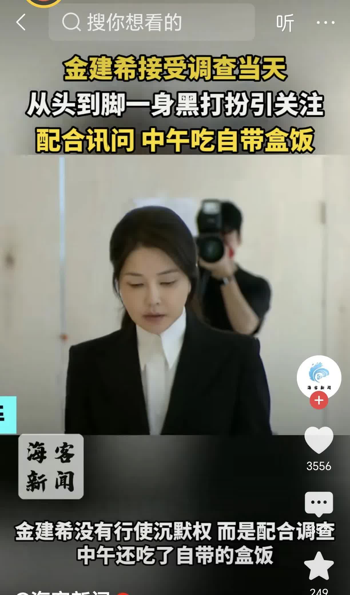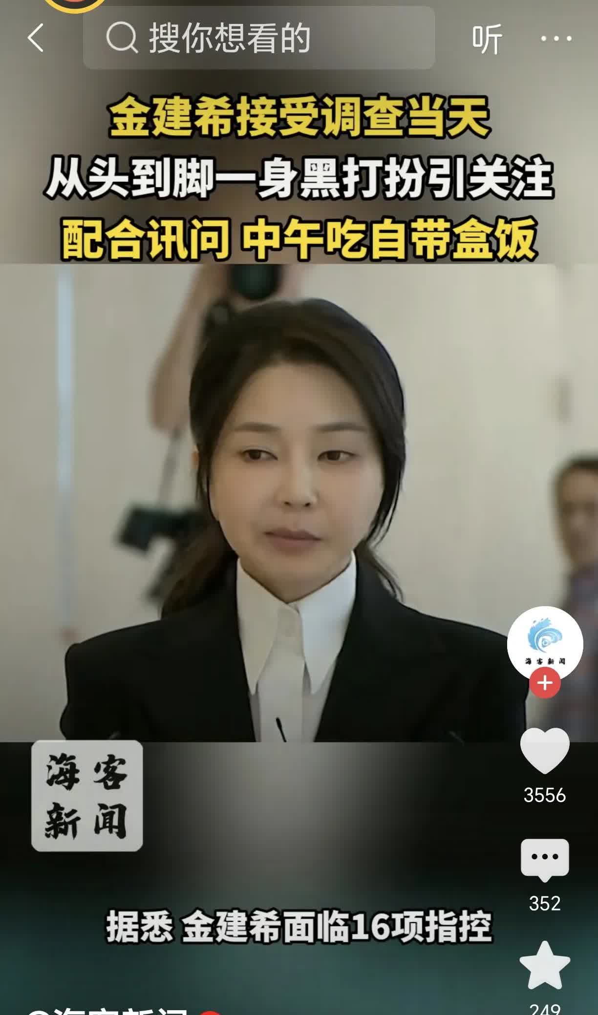 韩国原总统夫人接受讯问,她一身黑色服饰,头绳都配成了黑色,而且是自带干粮接讯问从自代盒饭接受讯问到自己承受。很是说明一个问题,韩国原第一夫人肯定是自我比较完美的一个人,到了这个地步,还自己带盒饭,这就说明了一个很潜在的问题,她是个很讲究的一个人,这从一个侧面也印证了将来的日子,很可能就是鱼死网破,承受不了,只有末路