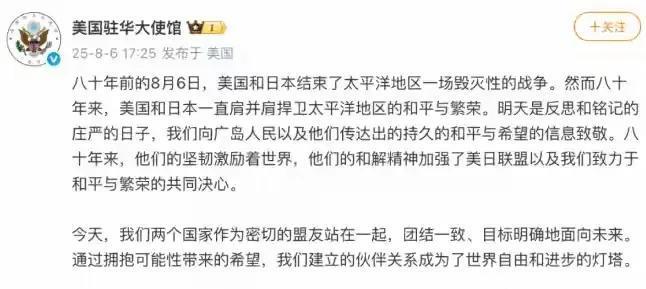 妈呀,真是离谱他妈开门离谱到家了!连人民日报都出来点评了。 没想到在日本纪念广岛被原子弹轰炸80周年的日子里,美国人会用这么一段文子来描述那段历史。 就连人民日报都看不下去了,犀利点评:难道轰炸广岛是美国和日本事先商量好的? 这名美国官方人士说,80年前的8月6日,是美国与日本共同努力结束了那场太平洋战争,是美国和日本共同捍卫了太平洋地区和平与繁荣。 把日本偷袭珍珠港和美国用原子弹轰炸日本广岛和长崎的事只字不提。 见过说谎的,但从来没有见过这么说谎脸不红心不跳的,估计日本人全都蒙圈了! #头号创作者激励计划#