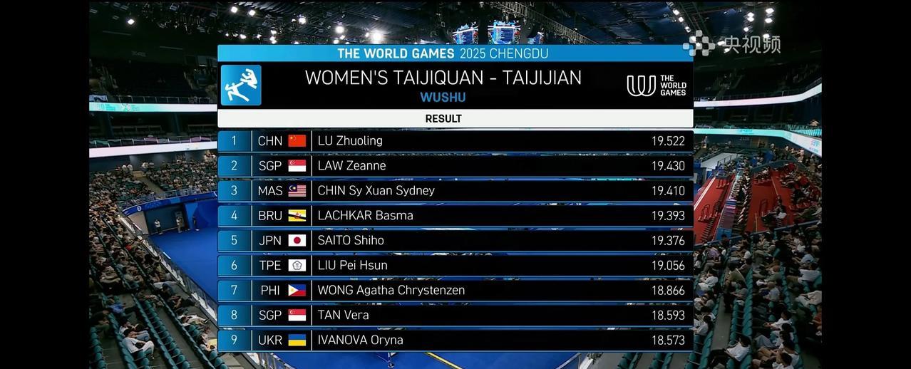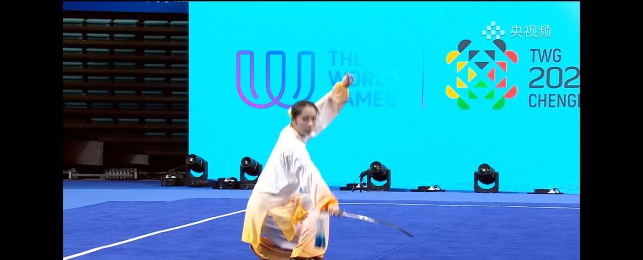 世运会中国内地首金来了!女子武术套路太极拳太极剑全能决赛,中国队选手卢卓灵为中国