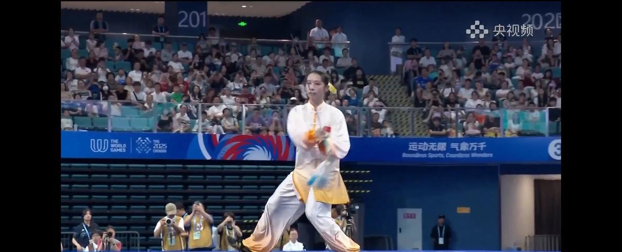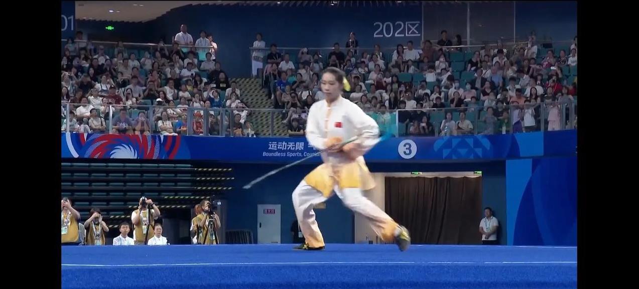 世运会中国内地首金来了!女子武术套路太极拳太极剑全能决赛,中国队选手卢卓灵为中国代表团夺得本届成都世运会首金!恭喜中国队!