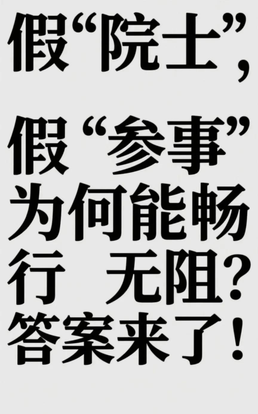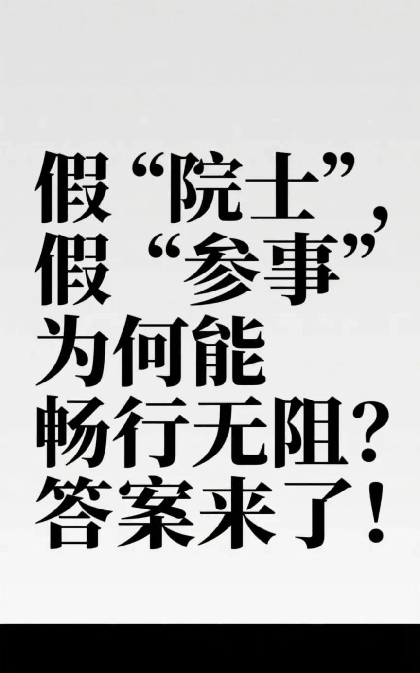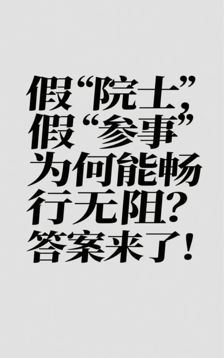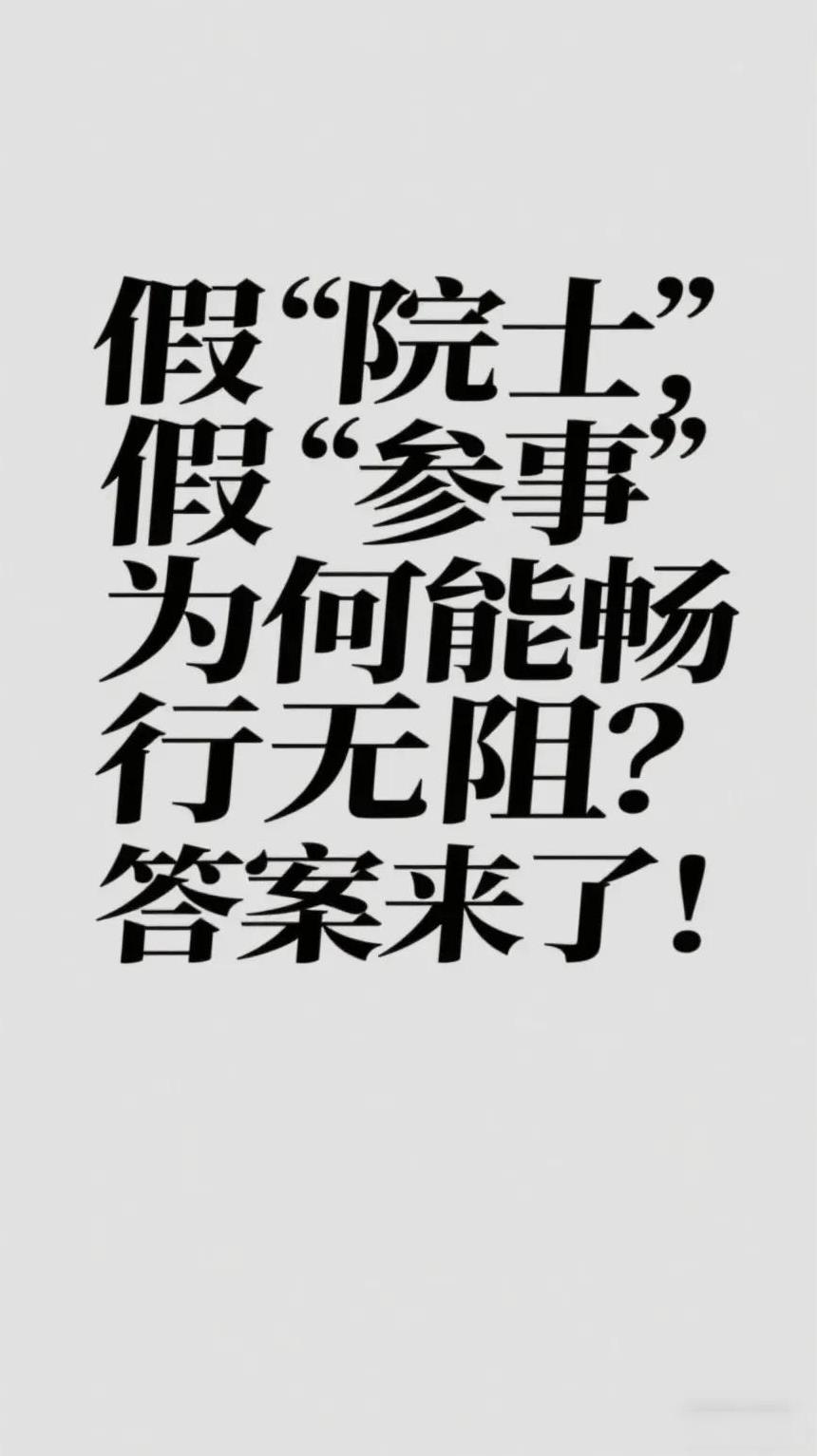 假“院士”,假“参事”为何能畅行无阻?答案来了! 前日,关于“国务院参事余鹏翔”“中科院院士阮少平”两大骗局的新闻暴露网络,引起广泛关注。余鹏翔和阮少平之流,伪造身份出入高端场合,甚至进入中小学校,害人不浅啊! 这里,人们难以理解的是,骗子并非达到怎么高明手段,为何能一路绿灯畅行无阻呢?答案就是藏在利益链条里。某些单位某些人利欲熏心,要政绩,撑门面默许骗子肆意妄为,资本为收割流量心甘情愿背后站台。 其实,这些骗子用虚假权威包装自我,借此造势,无限放大影响力和辐射力,最终坑的是孩子,是普普通通老百姓。值得警惕的是,这类骗局还在蔓延和屡屡上演,并且,已经延伸至网络,业已成为社会毒瘤。真正的权威无需包装,只要多问一句“凭什么你站在这里”,90%的骗局不攻自破。