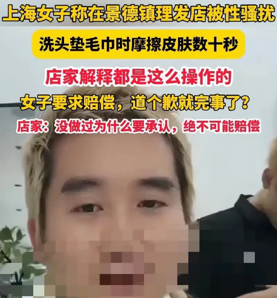 理发洗头性骚扰女子,看眼神、长相,疑似杭州1000姐!当时40元理发,控诉水温太烫有100度,找媒体上新闻了,店主赔了1000元!如果真是同一个人,可见就是讹诈!尝到甜头了,理发店有一点不规范的地方,就抓住不放了!这一次看起来比上次更严重,上升到性骚扰了,如果店主为了息事宁人,至少1万!1000姐变10000姐了!现在店主态度很坚决,不道歉不赔!看后续当地警方如何处理!