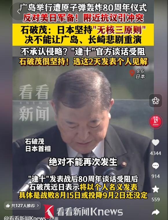 中国搞9.3阅兵,日本就搞广岛纪念!日本完全忽略对他国的侵略历史,并且声称自己是“受害者”? 每年的 9 月 3 日,中国都会举行隆重的阅兵仪式,为了铭记那段艰苦卓绝的抗日战争胜利史,缅怀在战争中牺牲的无数先烈,向世界宣告中国捍卫和平的决心。 而就在中国纪念胜利的时候,日本常常在相近的时间段举行广岛纪念活动,纪念 1945 年美军向广岛投放原子弹这一事件。 当地时间 2025 年 8 月 6 日,日本广岛县广岛市举行了遭原子弹轰炸 80 周年纪念仪式,日本首相石破茂出席了活动并发表致辞,他说决不能让广岛、长崎的悲剧再度发生,日本会坚持 “无核三原则”。 这话听着似乎没什么问题,可细究起来,却少了关键的一环,那就是日本为何会遭受这样的打击。 要知道,美军投放原子弹,正是因为日本发动了对外侵略战争,迟迟不肯投降,为了促使其尽快结束战争,才做出了这样的决定。 但在日本的纪念活动里,这种因果关系被刻意淡化了,他们更愿意强调自己是受害者,却对自己曾经给其他国家带来的灾难避而不谈。 中国搞 9.3 阅兵,铭记胜利与和平,日本就搞广岛纪念,强调自身受害,日本这种做法,完全忽略了对他国的侵略历史,还总把自己摆在受害者的位置上,这背后到底藏着什么心思呢? 中国举行 9.3 阅兵,是对历史的尊重,对先烈的告慰,也是向国民传递铭记历史、珍惜和平的理念,这有助于凝聚民族精神,让后代不忘过去的苦难,坚定维护和平的信念。 对于国际社会而言,中国的态度也为正确看待二战历史树立了标杆,提醒各国以史为鉴,避免战争重演。 而日本的广岛纪念,表面上是在反思战争带来的伤害,但实际上,一些势力却借此机会塑造日本的受害者形象,回避战争责任。 这对于日本国内来说,会让很多民众只看到自己国家遭受的苦难,而不了解日本侵略给其他国家带来的巨大灾难,长期下去,会扭曲民众的历史认知。 对于国际社会而言,日本这种回避责任的态度,也不利于各国之间真正实现和解,毕竟,只有正视历史,才能放下过去,走向未来。 日本强调受害者身份,说白了就是在刻意回避战争责任,二战期间,日本军国主义的铁蹄践踏了亚洲多个国家,给这些国家的人民带来了沉重的灾难。 南京大屠杀中,30 多万无辜同胞惨遭杀害,那一幕幕惨状,是历史永远无法抹去的伤痕。 可战后,日本的一些势力却在不断抵赖这些罪行,右翼势力把南京大屠杀轻描淡写地叫做 “南京事件”,甚至否认遇难者的人数,日本政府长期隐瞒 731 部队的罪行,还把它说成是 “战争医学研究机构”。 在慰安妇问题上,一些政治人物不仅否认日本侵略军实施的 “慰安妇” 制度,还在教科书中删除相关的关键字眼,试图抹去这段历史记忆。 他们在广岛、长崎核爆纪念日,东京大轰炸纪念日以及神风特攻队纪念日等活动中,反复强调自己的受害者立场,就是想让人们忘记他们曾经的加害行为。 甲午战争、日俄战争来说,教科书只介绍一些基本史实,却不分析战争的性质,避开了战争的阴暗面,反而着重阐述战争对近代日本所谓的 “有益面”,比如个人主义思想的高涨、不平等条约的废除、资本主义工业的迅速发展等。 对于侵华战争,一些教科书用 “日中战争” 这样的中性词汇,就是为了弱化其侵略性质。 在社会层面,一些宣扬日本军国主义、美化侵略战争的书籍、影视作品也时不时出现,这些东西会对民众尤其是青少年的历史认知产生很坏的影响。 与之形成鲜明对比的是,日本遭受原子弹轰炸等 “受害” 经历,在教育和社会宣传中被不断强化,这就使得日本民众对历史的认知越来越片面,只知道自己国家受了苦,不知道自己国家曾让别人吃了多少苦。 再看看中国的 9.3 阅兵和日本的广岛纪念,两者的本质区别,其实就体现在对待历史的态度上。 中国的 9.3 阅兵,是对历史的庄重铭记,每一个步伐,每一面旗帜,都在诉说着过去的抗争与牺牲,它向在抗战中牺牲的英烈致敬,也向全世界宣告中国捍卫历史真相、维护世界和平的坚定决心。 中国正视历史,不回避战争中遭受的苦难,更强调中国人民为抗击侵略所做出的巨大牺牲与贡献,这是一种对历史负责的态度。 而日本的广岛纪念,原本应该是一个深刻反思战争、汲取历史教训的契机,可在一些势力的操弄下,却变成了片面强调自身受害、回避战争责任的表演。 铭记历史不是为了延续仇恨,而是为了不让悲剧重演,这才是对待历史应有的态度。 【评论区聊聊】:日本要怎样做才能真正正视历史,获得受害国家人民的谅解呢?