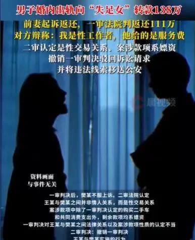 吉林,女子和前夫离了婚,才发现前夫在婚内就已经很不老实了,竟然还瞒着她,和失足女交往,还给失足女转了138.4万,这笔钱可是她和前夫的夫妻共同财产,她要追回来,于是她就起诉失足女,一审判决要返还111.8万,但二审因为失足女的一句话,判决变了。 8月8日潇湘晨报报道,高女士早就察觉前夫不老实,婚内就心不在家,夜不归宿,作为一名妻子,她能感觉到丈夫对她的冷落,终于两人的婚姻走向了结束。 本来她和前夫离了婚之后,她就已经开始了新的生活,没有了前夫那些令人糟心的事情,她再也不用操心前夫在外面干什么,再也不用在意,前夫到底还爱不爱她,她只需要把自己的生活过好就行。 可是离了婚之后,她突然得知,前夫竟然给一名失足女转了138.4万,并且是在他们婚内给的。 得到这个消息,高女士气得好几天吃不好睡不着,他一直以为前夫是遇到了更加年轻漂亮,有才华的女子,所以才会一只脚踏入别人家,冷落了她。 她从没有想过前夫的品位会那么差,竟然喜欢上一名失足女,还和她纠缠在一起,甚至不惜给她转了这么多钱,博得她的芳心。 高女士想不明白,她也不再关心前夫的感情生活到底有多糟糕,也不再关心前夫和这个女子纠缠在一起,会不会得什么病,她只关心一个事情,那就是前夫转给失足女的138.4万。 那可是她和前夫,在婚姻关系存续期间的财产,前夫无权擅自将这一笔钱转给其他女子。 这笔钱也是她和前夫辛辛苦苦赚来的,就这样成了别人的钱财,高女士不甘心,于是她去找到那名女子,要求她返还这笔钱。 但那名女子说,她和高女士的前夫只是交易关系,这138.4万都只是他们交易的资金而已,这是她应得的,她不愿意返还。 这些话从那名女子嘴里说出来,高女士觉得特别的不可思议,原来这种女子就可以让前夫花上100多万。 可怜她在婚内,她曾经期待过前夫给她带来浪漫,可前夫却始终舍不得为她花钱,总是在敷衍她。 如此一对比,她才知道自己在前夫眼里,是那么的一文不值,正是这样,高女士才更加迫切要回这一笔钱。 她起诉了这名女子,她表示,这名女子和她的前夫在一起交往的时候,她和前夫还没有离婚,前夫就和这名女子有不正当的关系,这是有违公序良俗的。 高女士的诉求是有理有据的,前夫在婚姻关系存续期间,就和别的女子交往,他的行为确实是有为公序良俗的行为,这种赠与民事行为是无效的,可以撤销。 《民法典》第143条规定:具备下列条件的民事法律行为有效: (一)行为人具有相应的民事行为能力; (二)意思表示真实; (三)不违反法律、行政法规的强制规定,不违背公序良俗。 因此一审法院判决,这名女子需要返还111.8万给高女士。 但是这名女子不服气,在二审中,她便称她和高女士的前夫,只是交易关系,她是一名失足女工作者,这些钱只是他们的交易关系的金钱来往,是服务费,是她应得的。 这名女子如此一说,事情变得复杂起来了,若真是如此,高女士就有可能要不回这笔钱。 因为如果这名女子和高女士的前夫有交易关系存在,那么这是违法行为。 《治安管理处罚法》第66条规定,嫖娼者一般会被处以10-15日拘留,可并处5000元以下罚款;情节较轻者可能面临5日以下拘留或500元以下罚款。 刑事案件中的嫖资处理,若涉及组织、强迫他人卖淫等犯罪行为,嫖资作为违法所得会被追缴,并可能面临5年以上10年以下有期徒刑,情节严重者最高可判无期徒刑。 公安机关在查处嫖娼行为时,会收缴嫖资并登记造册,公开拍卖或按国家规定处理,所得款项上缴国库。 正是由于这名女子承认自己是失足女,所以二审法院判决撤回了一审判决,然后将这些违反线索转移给公安机关处理。 一旦高女士前夫和这名女子的关系被认定为交易关系,那么这100多万,高女士有可能拿不回来。 那么你是如何看待这件事情呢?#头号创作者激励计划#
