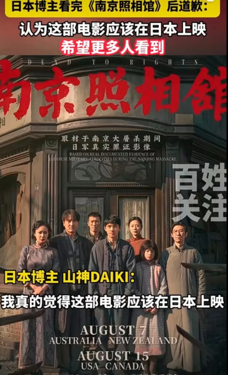 你们能接受这个日本博主的道歉吗? 这个日本博主说他看了《南京照相馆》这部电影后内