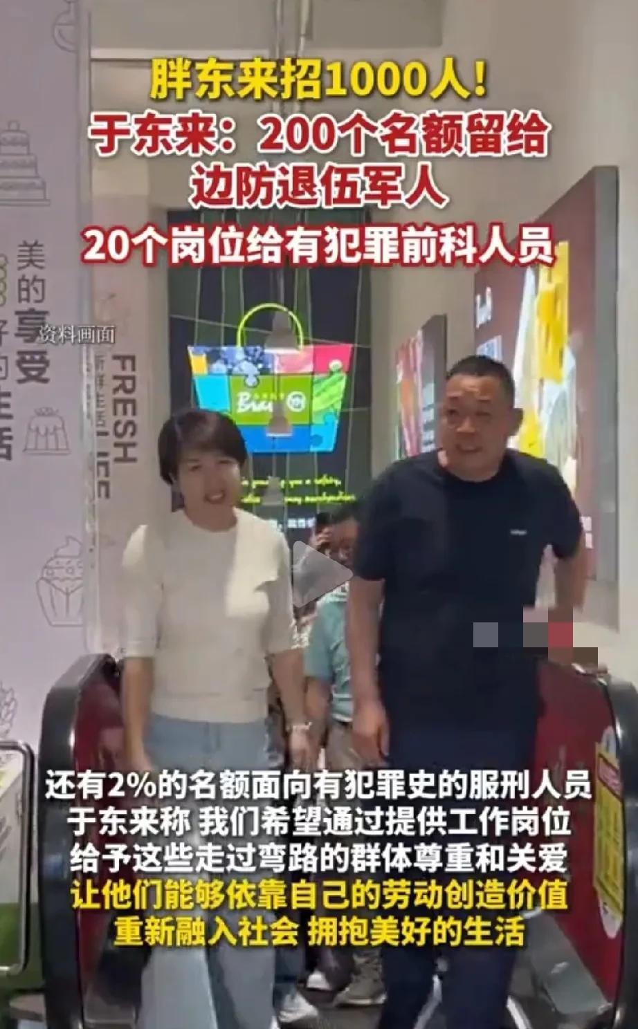 一则招聘消息让边防退伍军人和有犯罪记录人员破防了!那成想几乎脱离社会的这两拨人正在发愁这个社会能不能接纳他们,他们用什么方式融入社会呢?没想到胖东来伸出了橄榄枝! 不得不说于东来是一个有大爱的一个企业家,他的胸怀和格局是绝大多数企业家望尘莫及的!
