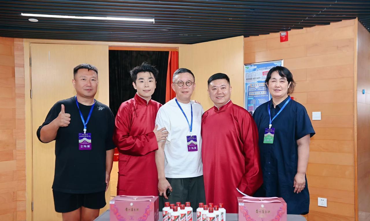 德云社张九南晒贵阳专场演出纪念照,感谢贵阳父老,感谢主办方,觉得十二年的搭档挺好。第一张照片,张九南、高九成在贵阳专场后台的合影。第二张,张九南、高九成面前摆着茅台,二人喜笑颜开,估计内心激动坏了,或许在想,给我的么。小细节,酒可是12瓶哦。第三张,应该是和主办方的合影,要不张九南也不会在文案中特意感谢一番。 #张九南晒后台合影照#