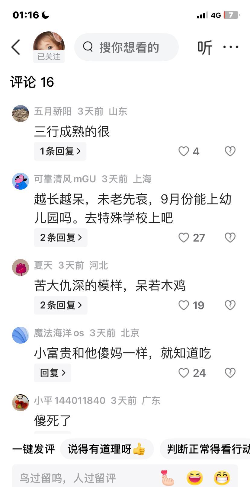 为啥有人就不喜欢三行呀?我觉得以妮娃的智商能生出三行这样的孩子已经很不错了!我们