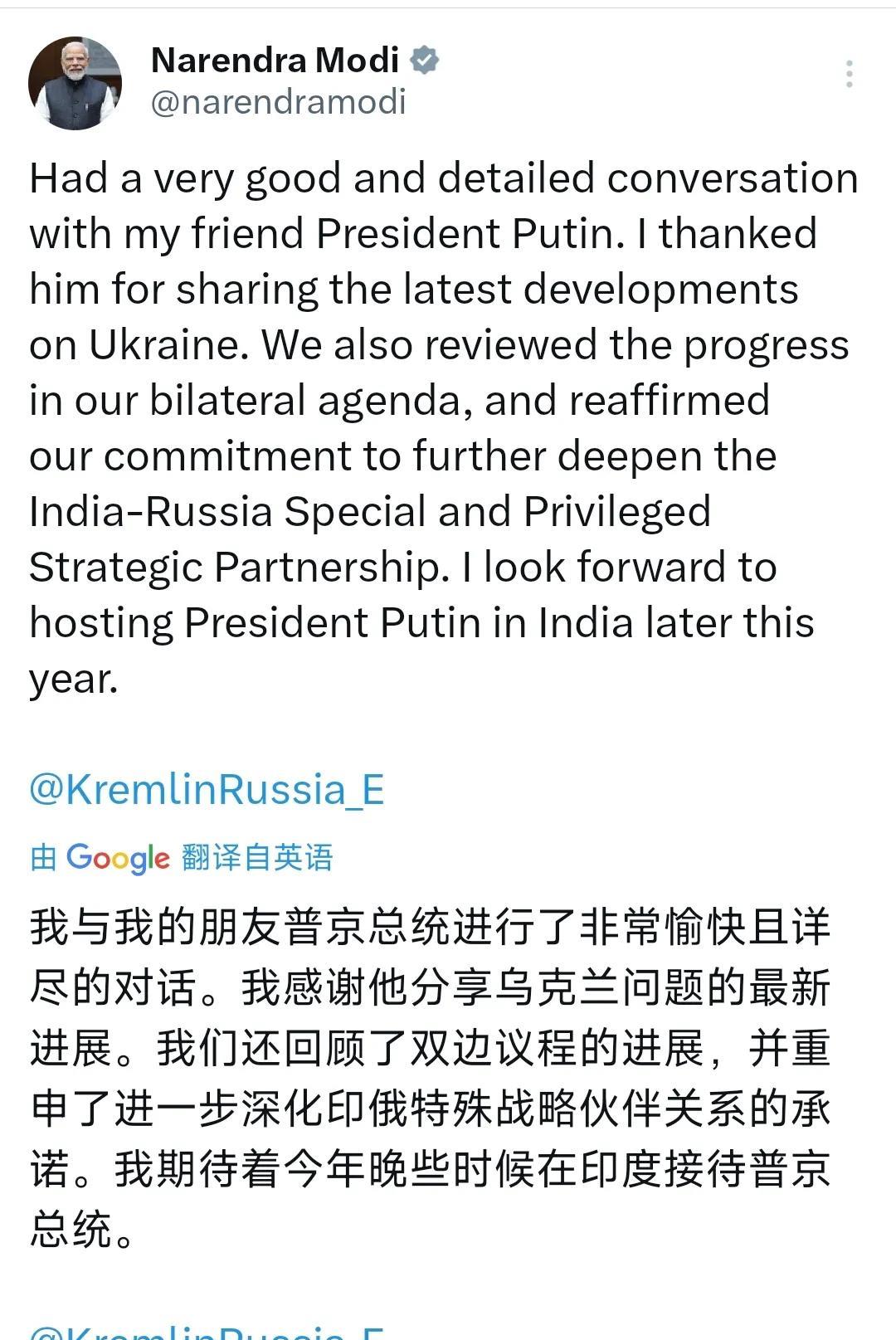 莫迪和普京是故意气特朗普吗?印度总理莫迪今晚(8月8日晚)写道:“我与我的朋友普