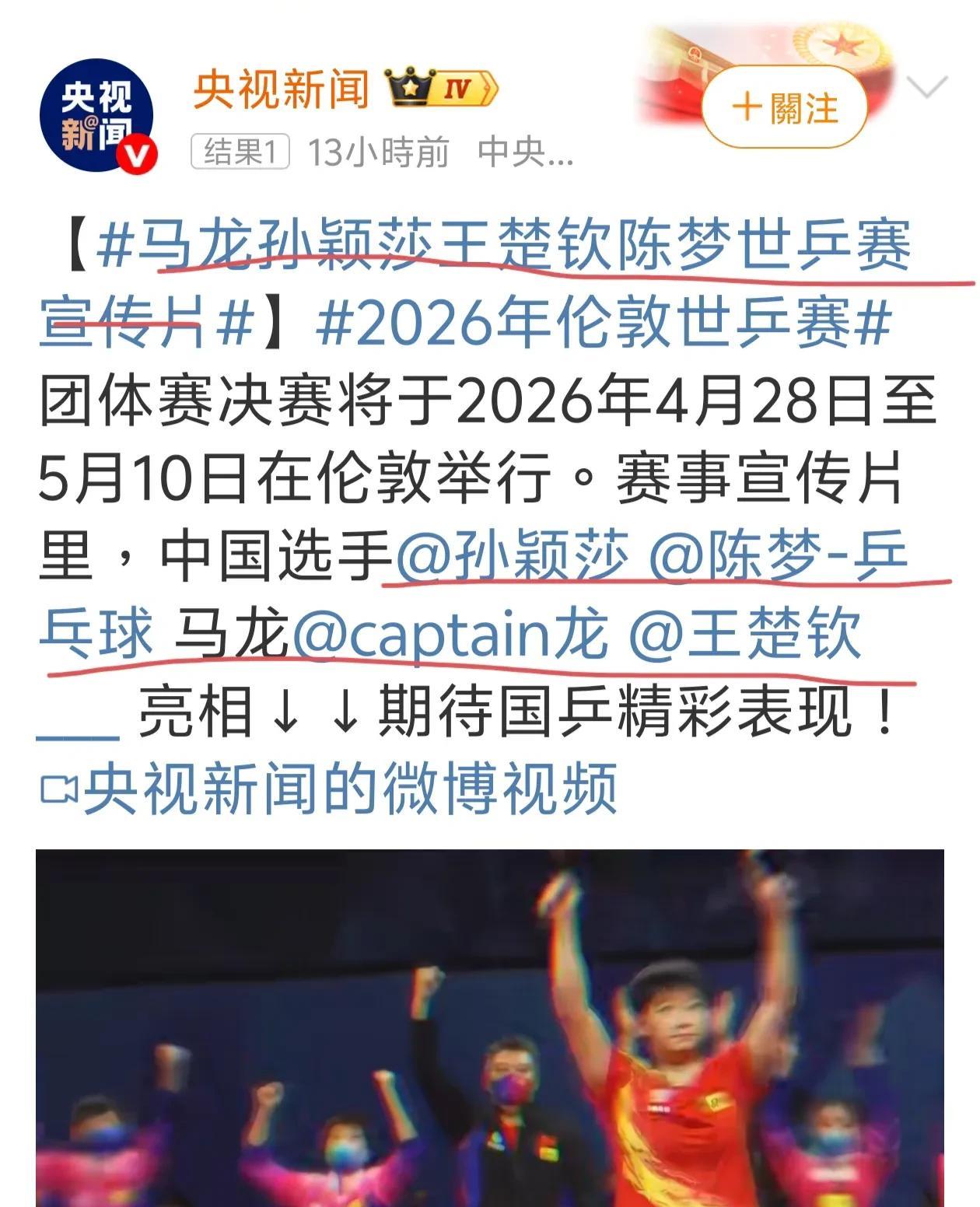 昨天人民日报和央视新闻转发了国际乒联2026年伦敦世乒团体赛宣传视频。 两年一次的世乒团体赛将在2026年4月28日至5月10日在伦敦举行。这个宣传片马龙王楚钦莎莎陈梦悉数在列,唯有缺少樊振东和王曼昱。尤其是樊振东,去年釜山世乒赛团体赛半决赛对阵韩国队时还历历在目,当马龙和王楚钦同时输给李尚洙和张禹珍时(图三),在中国队1-2落后的情况下,是樊振东,是他力挽狂澜把中国从悬崖边拉了回来,是他狂砍两分为团队晋级立下汗马功劳,最后中国队在决赛中横扫法国队取得最后胜利创下十一连冠记录! 长期以来樊振东都是团体赛的铁血一单,是团体赛的的战神!一个总是以国家荣誉至上,集体荣誉至上,为团队付出最多的人竟然在下一届世乒赛团体赛宣传片中没有一个镜头,他们是怎么做到的?他们竟然将一个超级全满贯给遗忘了?樊振东还没退役啊,他们这样做能说得过去吗?有说服力吗? 2028年洛杉矶奥委会宣传片里都有樊振东的面孔,而你们国际乒联2026年世乒团体赛的宣传片就这么急着将樊振东除去?简直让人不可思议! 不过,明年世乒团体赛中国队参赛名单掌握乒协手里,而不是国际乒联手里!