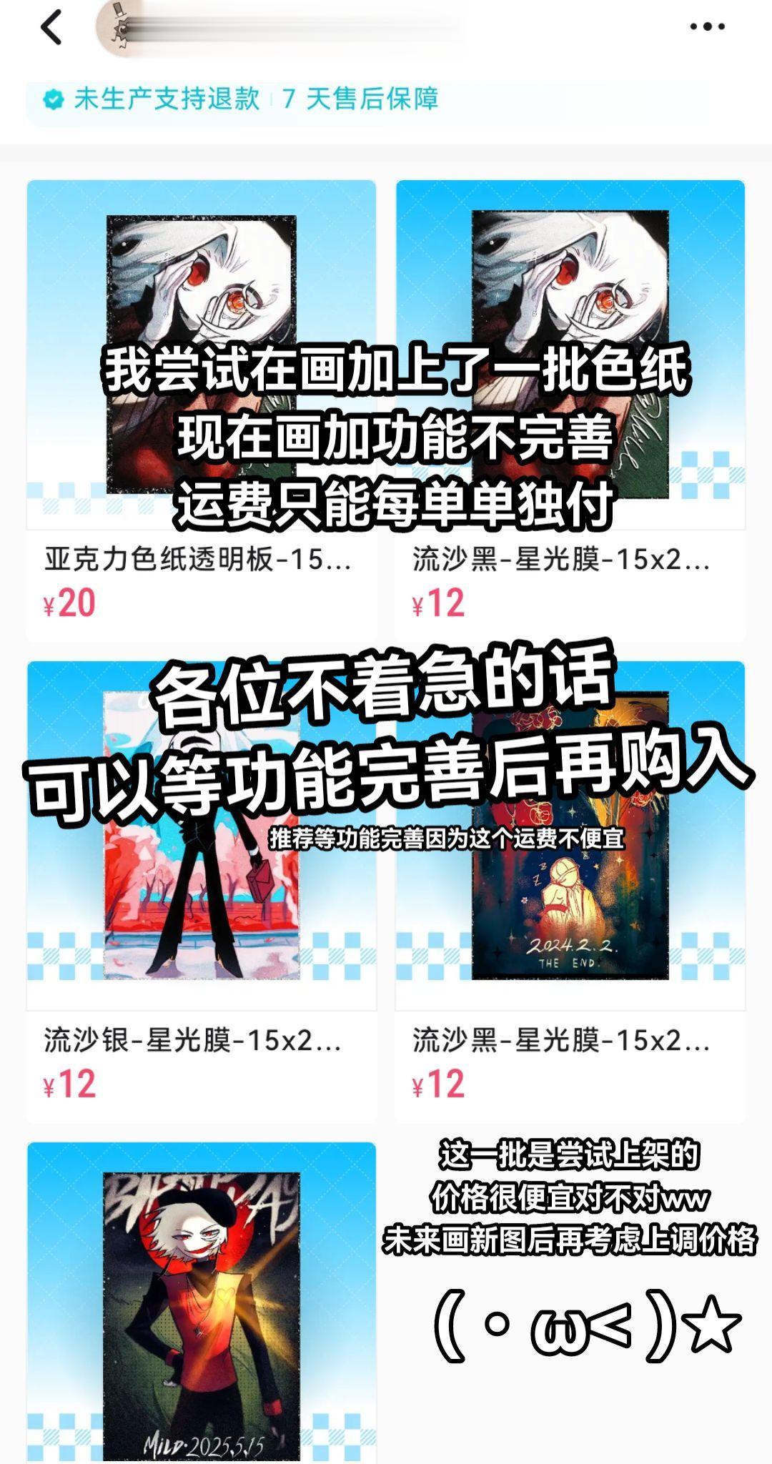 炽烈,还有最近上了点谷子,宣传一下(不过大家可以等功能完善后再下单,因为现在每次只能下一张,运费只能单独付,有点亏的同时也担心暴力运输╯﹏╰)