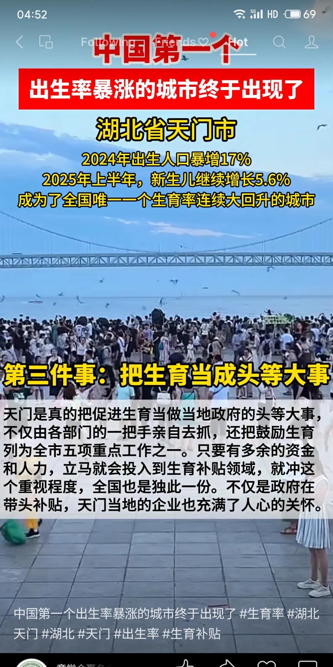 湖北天门市2024年出生人口暴增17%,2025上半年再增5.6%,成全国唯一生