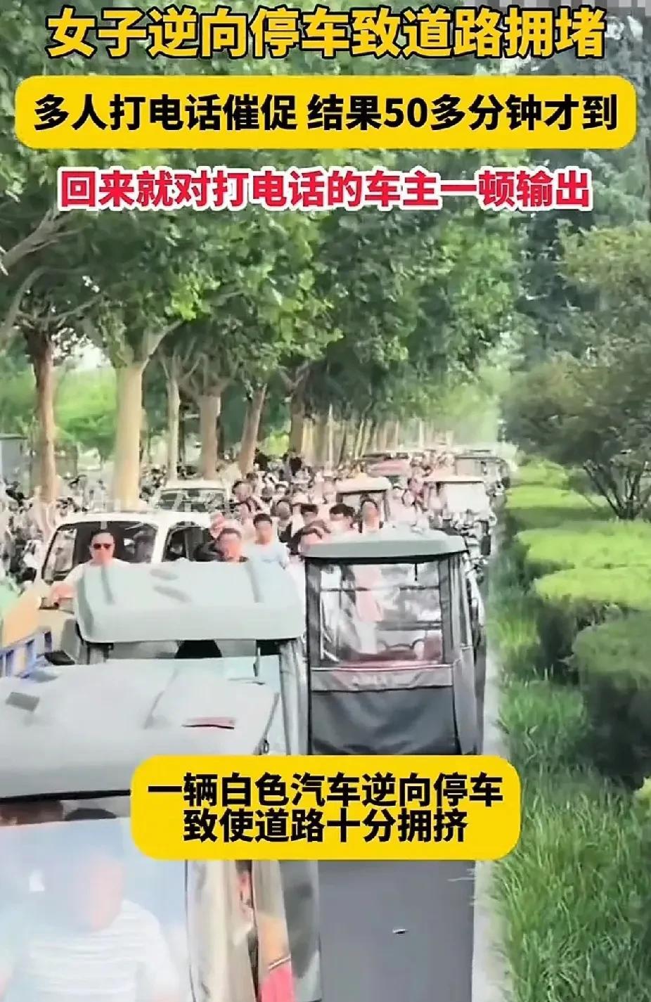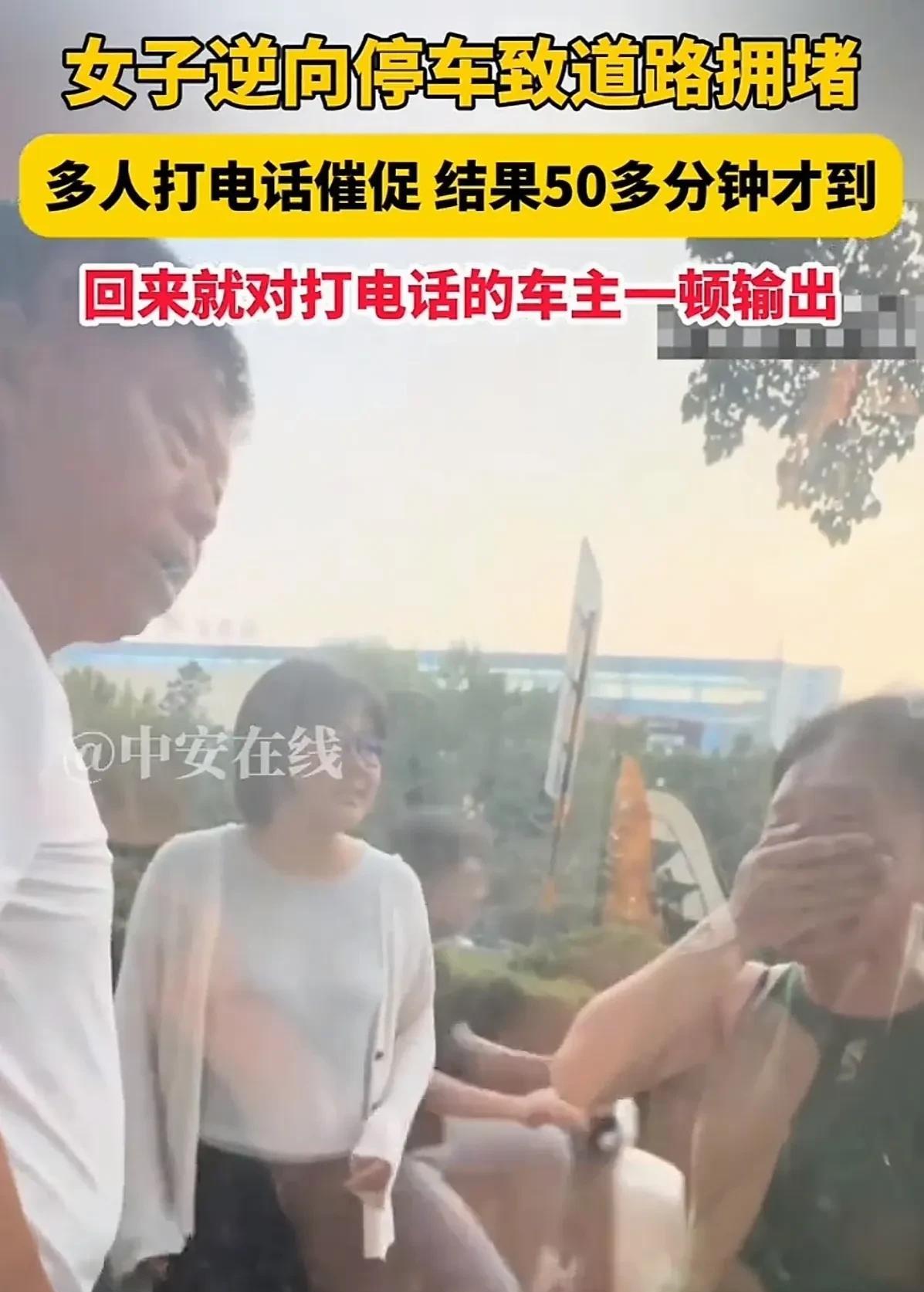 女子逆行停车致大堵车,被大哥教育了,觉得很委屈捂嘴哭了 根据网上视频显示,这个女的逆行停车堵路了,有人打电话让她挪车,她说5分钟就过来,结果变成了50多分钟。 女子回来挪车还恶人先告状,拿手机录视频,质问一个给她打电话的男子,说她在带孩子,已经跟你说了让别人下来帮忙挪车,你为什么反复打电话给我,反正我有的是时间和你耗,现在这是你想要的结果吗? 有位大哥实在是受不了,这么多人被堵着行驶缓慢,女子还有空在那吵架,于是他说了女子几句,旁边一个女的过来劝,女子这才委屈的哭着离开。 看了图一才发现,原来是停车位被电动车占了,女子才把车停在电动车后面,难怪女子会觉得委屈。 但她这样也占道了,影响了其他人的出行,也难怪路人不偏向她。
