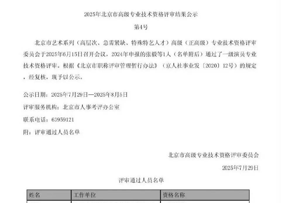 一觉醒来 娱乐圈炸锅了呀 47岁的张译(张毅) 通过了北京市一级演员(正高级职称