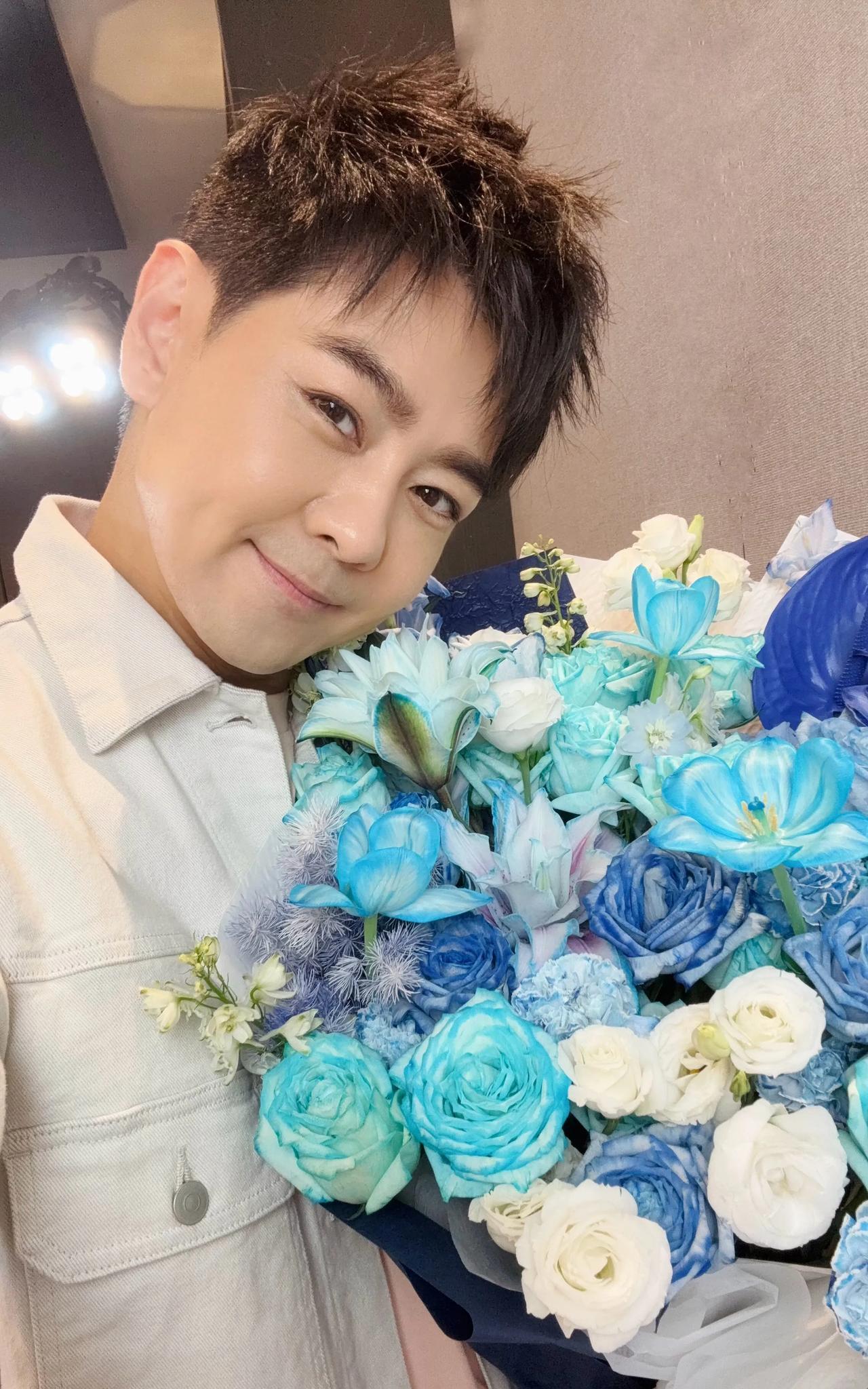 51岁的林志颖晒自拍照,评论区网友感叹不老男神,穿一身白色手捧鲜花,传说中嗯白马