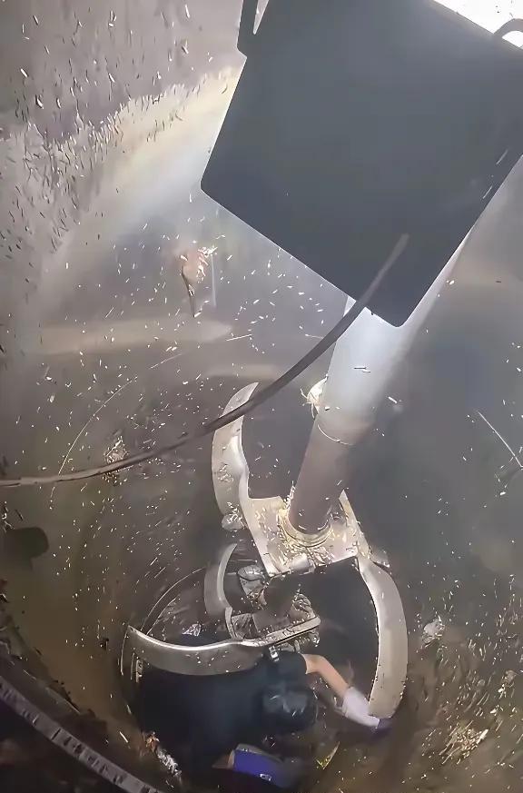 干这种维修的工作胆子得有多大? 看这个刀,长估计都有6-70公分长,这深度有两三