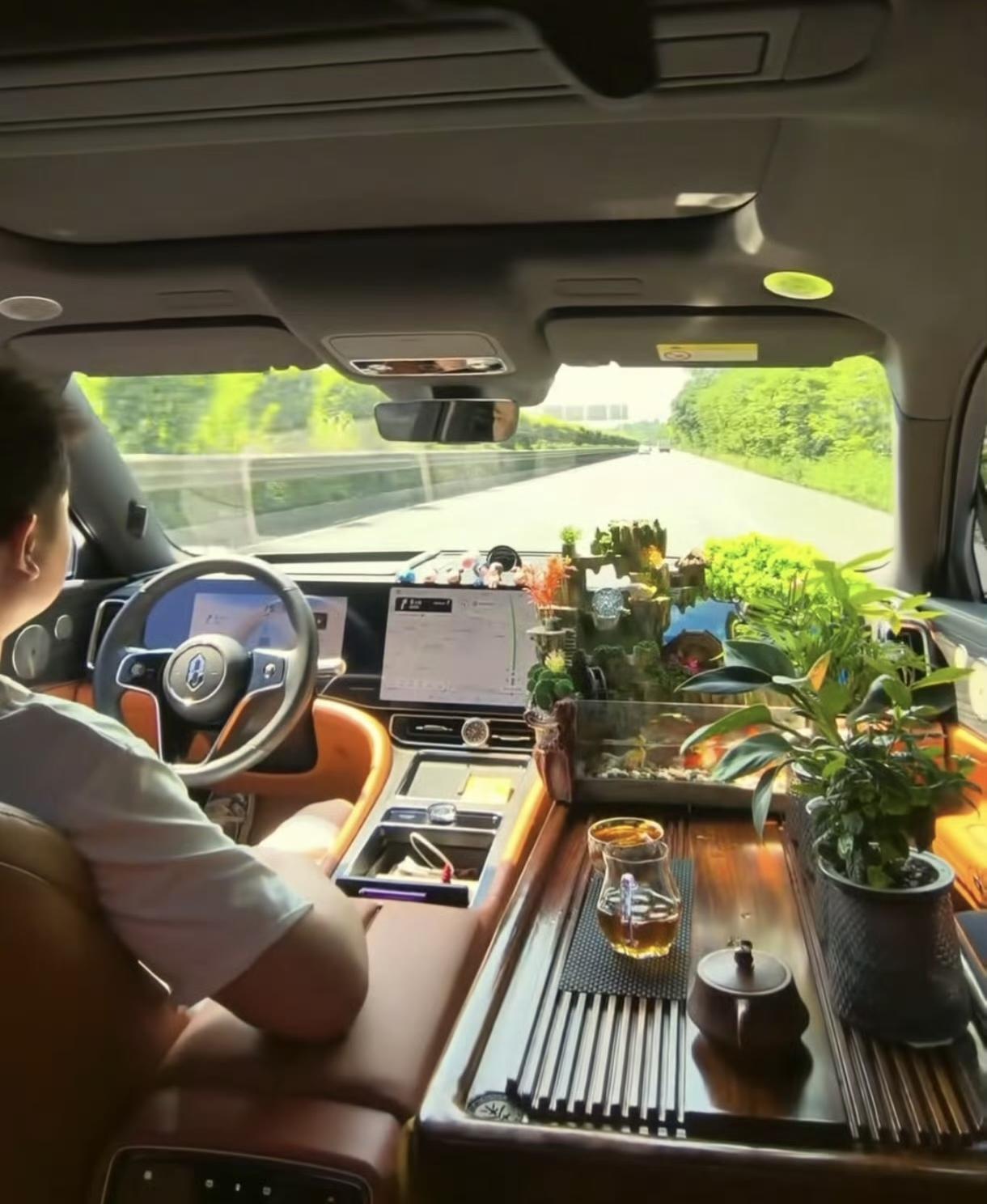 城会玩,刚看到个尊界S800车主有点东西,属于是高明远同款副驾,茶台、鱼缸、绿植都给安排上了,停车的时候可以喝口茶,妥妥大佬既视感,溜不溜[流鼻血]