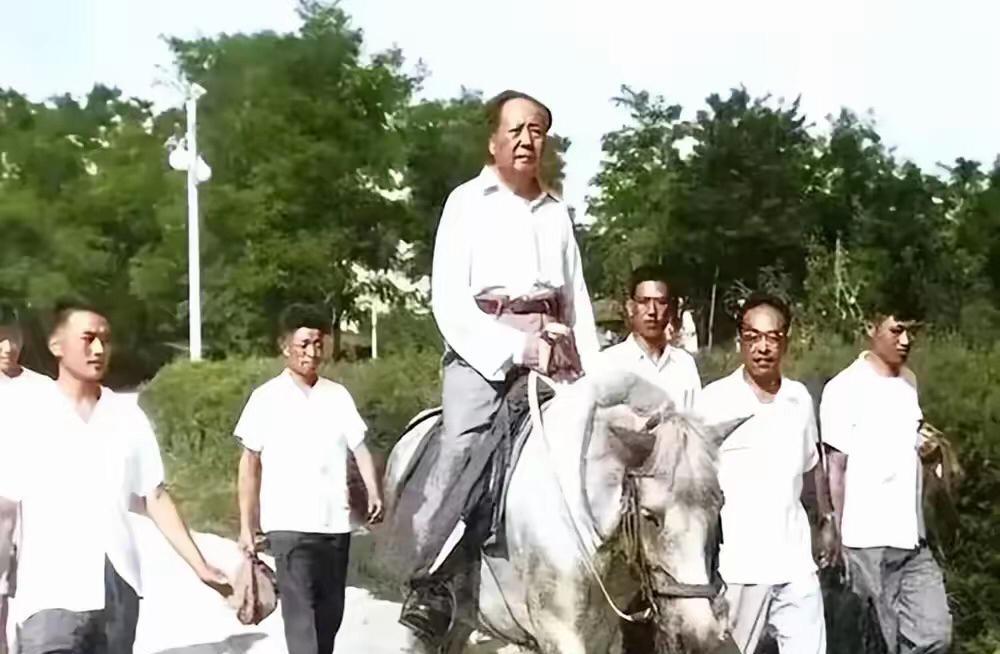 伟大领袖毛主席骑着马的照片不多。 新中国成立后他骑过一次,毛主席和随行工作人员到农场视察,看到一匹白马就站在那里看了半天,说了一句,这匹白马太多像我在长征路上那匹白马? 于是,工作人员就找人牵来那匹白马,毛主席骑着马一边行走一边讲起他长征中那匹白马。照片一。 毛主席说,红军战士们进二万五千里长征,当时非常艰苦,红军首长分到一匹马,我也分到一匹马,是白色的马,那匹马带着我们走过千山万水,雪山平原。 红军一边和国民党部队作战,一边向西行军,一连几天吃上饭,战士们有的饿的走不动路,为了生存,毛主席下令让炊事员把那匹马杀了,这一决定挽救不少红军战士性命。 毛主席没有忘记那匹大白马,红军长征结束到达延安这里成为革命根据地,共产党八路军把这里搞的热火朝天。 蒋介石派国民党大部队对延安多次轰炸围剿。 毛主席和部下及部门队一次次转移,因为毛主席特别喜欢白马,部下就给毛主席买了一匹白马,那匹白马带着毛主席转战陕北。照片二。 毛主席在延安时很年轻,也时常练习骑马,照片三。 供大家欣赏。