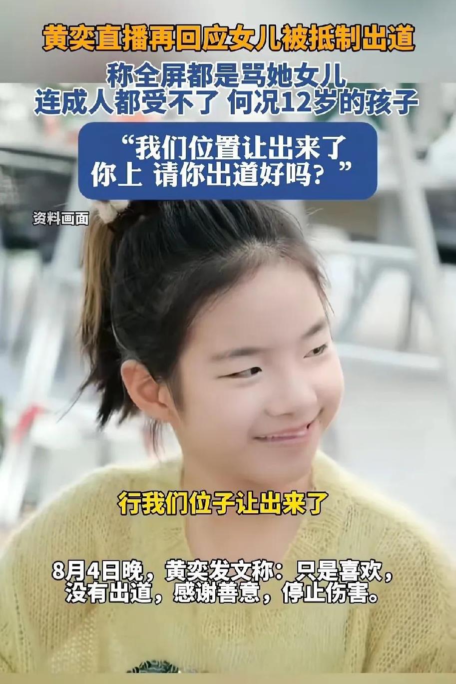 没事真的要多读书! 黄奕的女儿被骂上了热搜,结果黄奕直接在直播间硬刚网友:“行,位置让出来了,你上”, 先有女儿说:你都可以当明星,为什么我不可以, 后有妈妈“行,我们位置让出来了,你上,请你出道”? 果然多读书真的太重要了,现在不仅女儿被骂,妈妈也跟着一起了,关键黄奕自己还没有意识到“她才是整件事情的始作俑者”