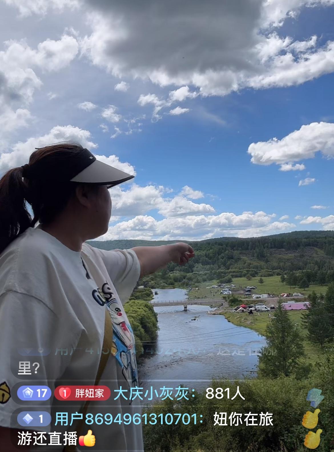 8月9日,胖妞出现在直播间,胖妞带着爸爸妈妈自驾游内蒙古了,胖妞说:住民宿不贵,