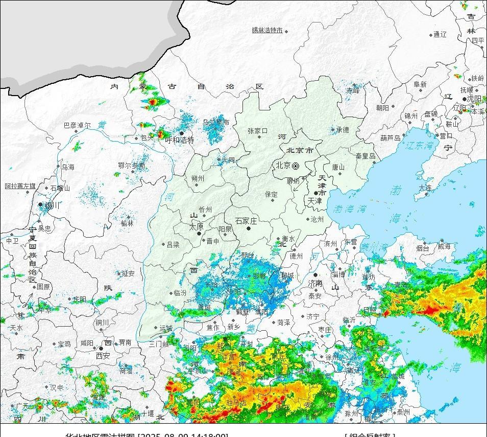 过去24小时华北平原迎来大范围降雨天气,京津冀中南部、山东大部出现中到大雨,河北
