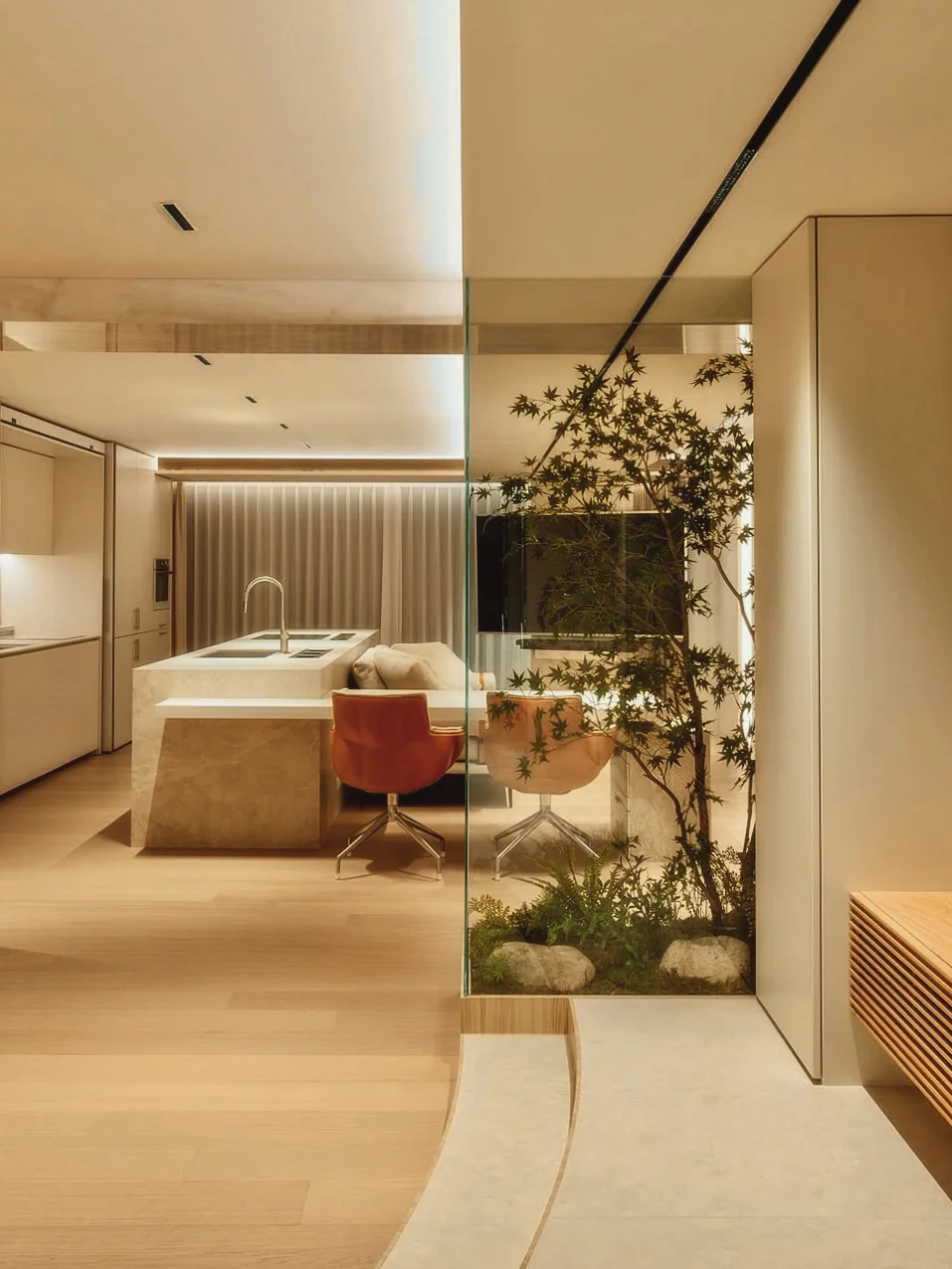 • 隔断:12mm超白长虹玻璃+极窄金属边框(透光率85%,模糊边界感)