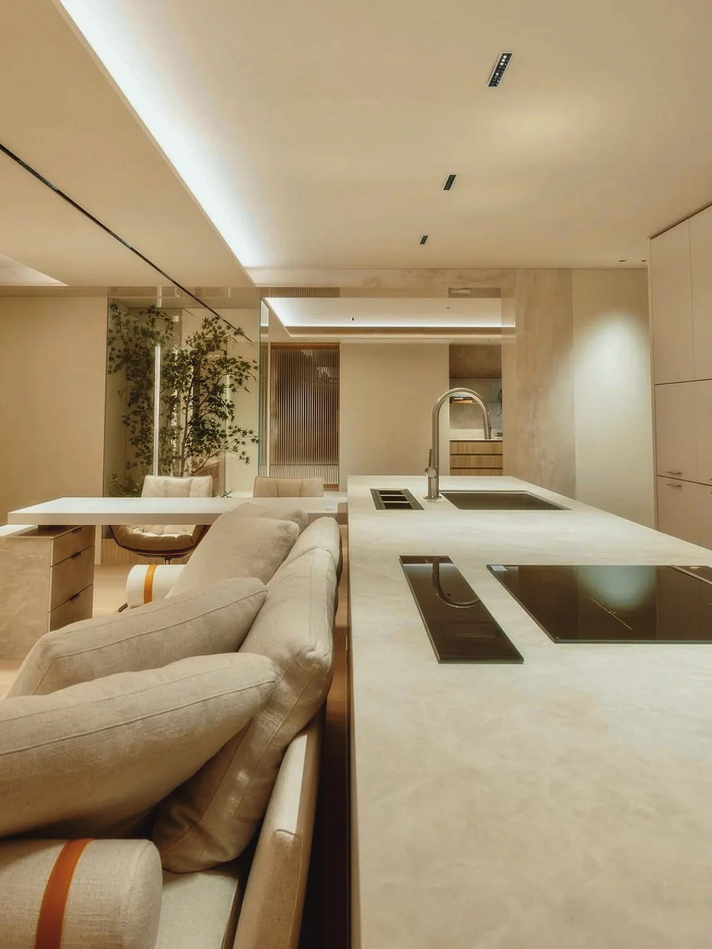 • 厨房台面下藏3000K暖光灯带(切菜不背光)