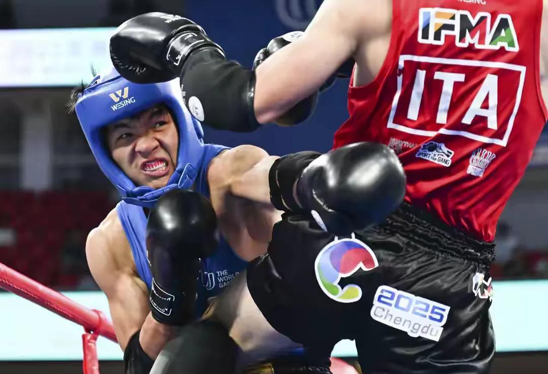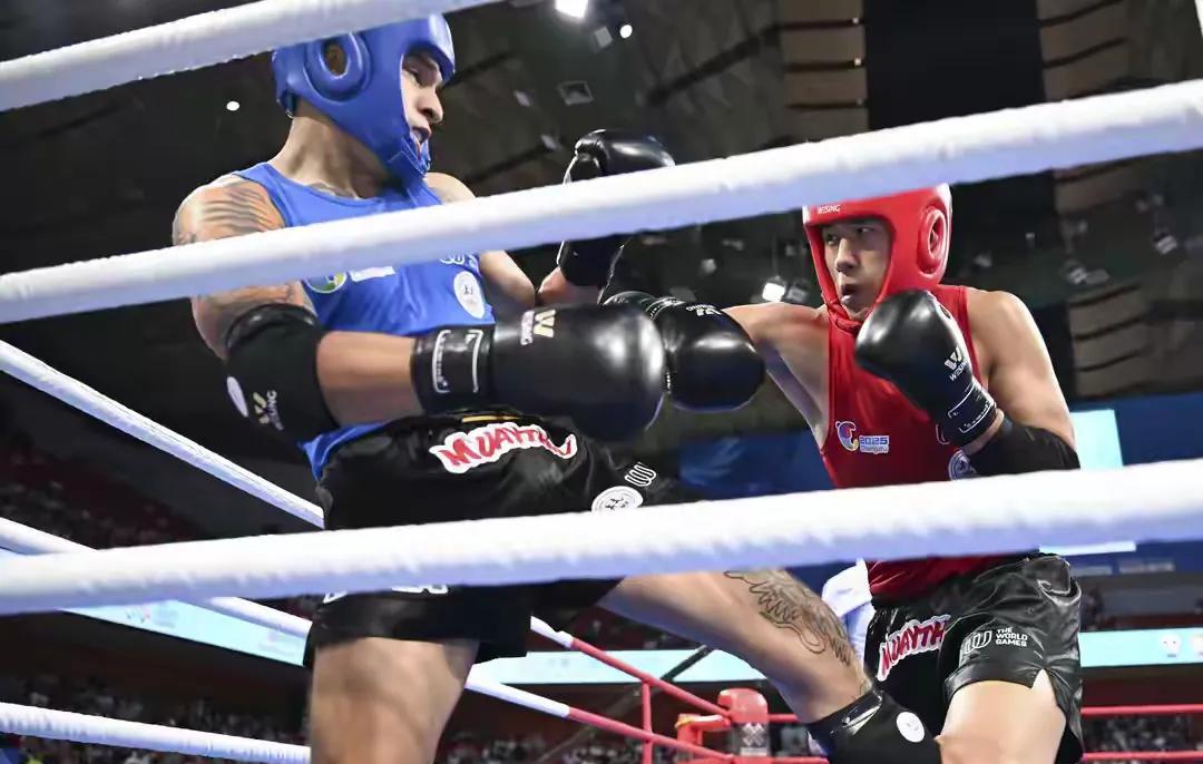 成都世运会泰拳项目进行了几个级别的1/4决赛,女子48公斤级,中国选手刘晓慧以20-18战胜新加坡选手谢丽尔,女子60公斤级,韩鑫对阵匈牙利选手阿德尔,裁判因阿德尔受伤而终止比赛,判韩鑫获胜,男子86公斤级,张程程战胜墨西哥选手埃尔南德斯,三人都顺利晋级半决赛,男子71公斤级,中国选手季龙腾不敌意大利选手吉安卢卡·乔治。