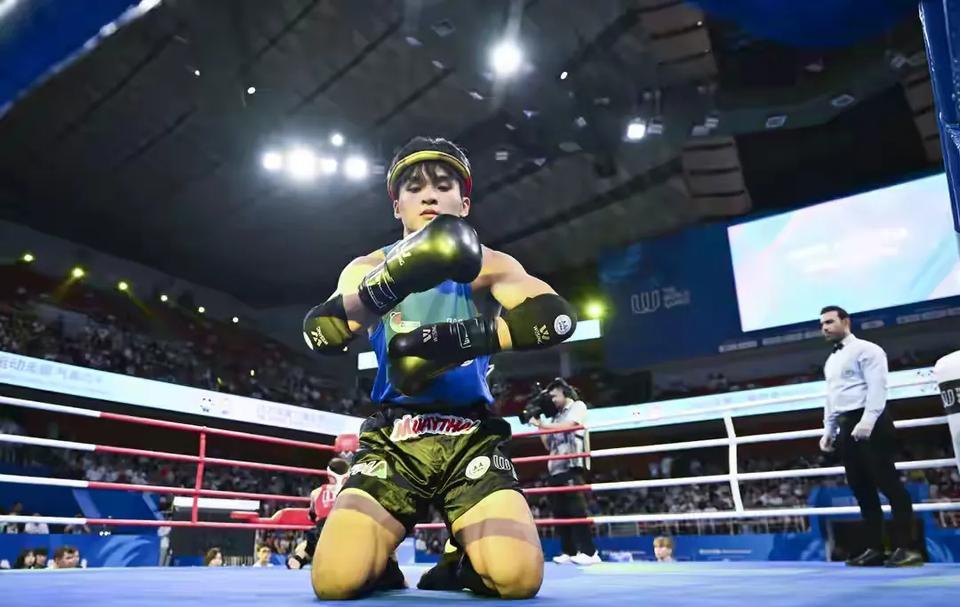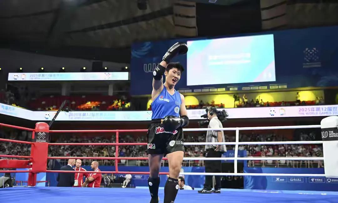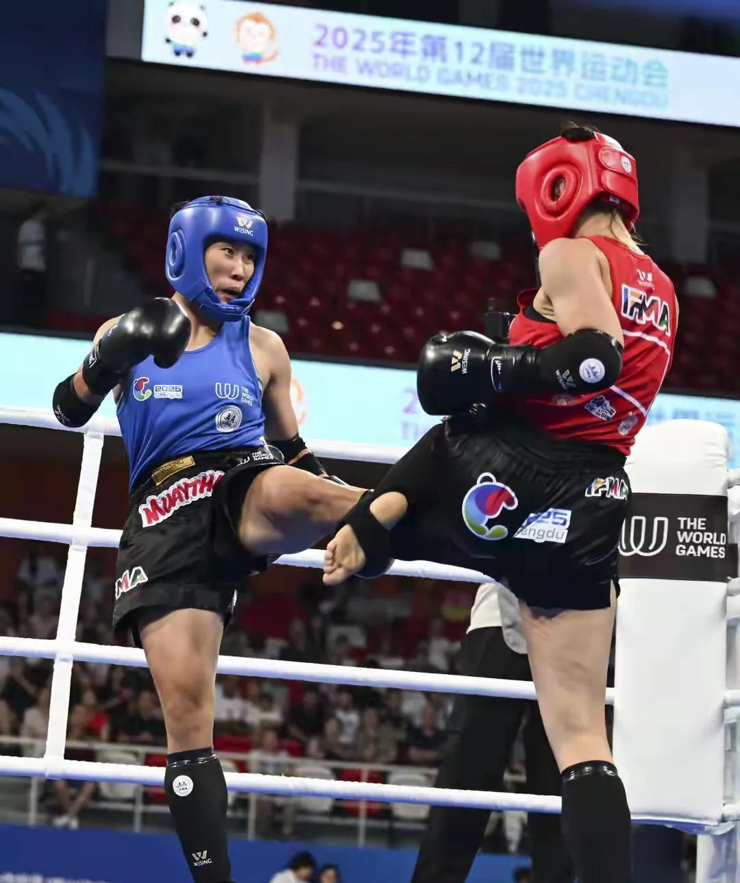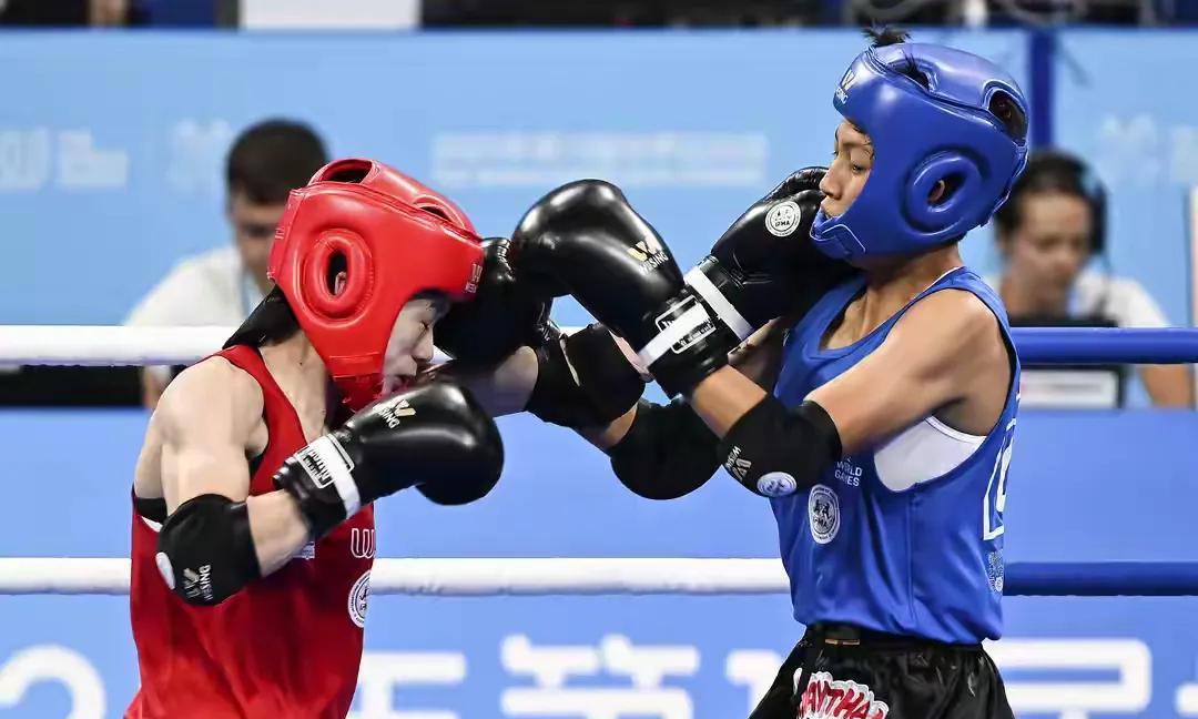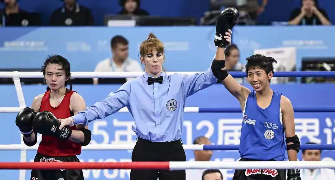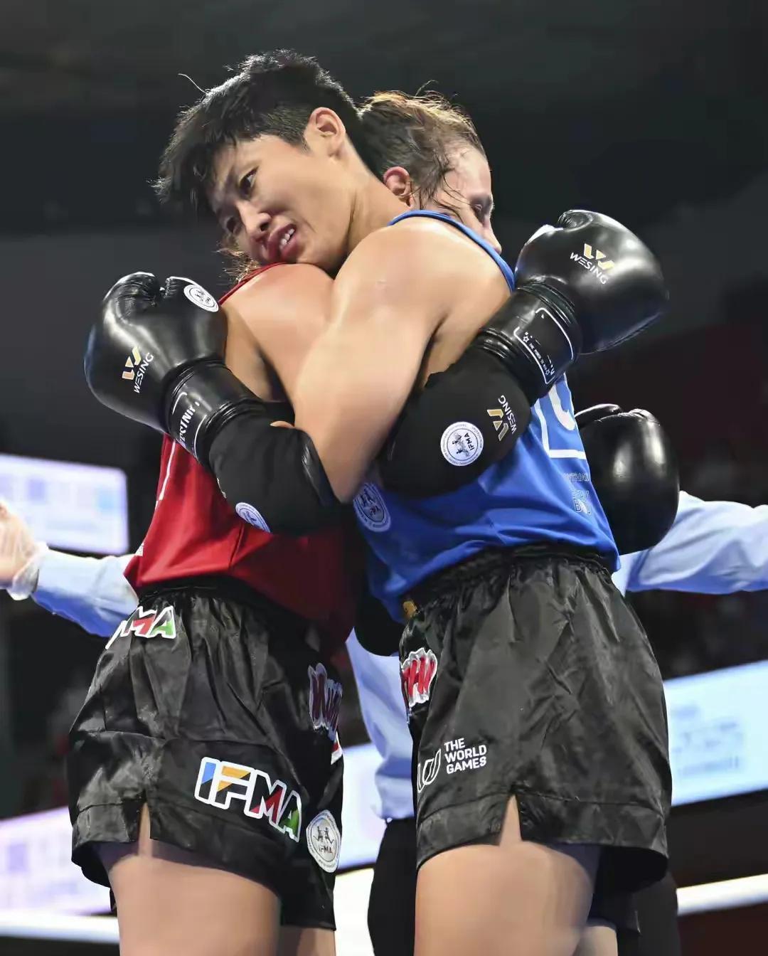 成都世运会泰拳项目进行了几个级别的1/4决赛,女子48公斤级,中国选手刘晓慧以2