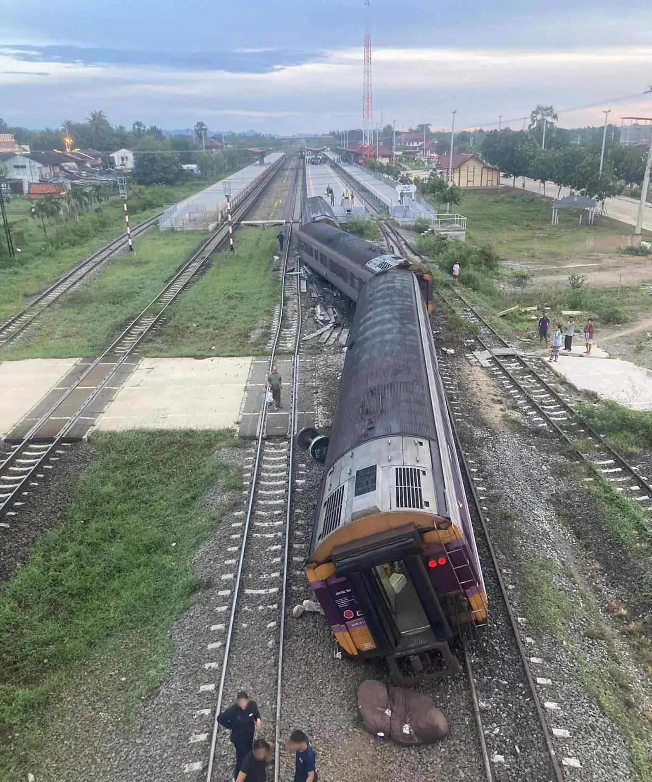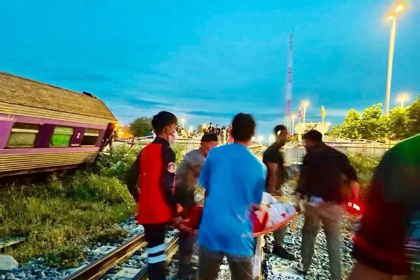 泰国消息:泰国特快列车在奎武里站脱轨:伤员及乘客已撤离。 泰国当地时间今日(20