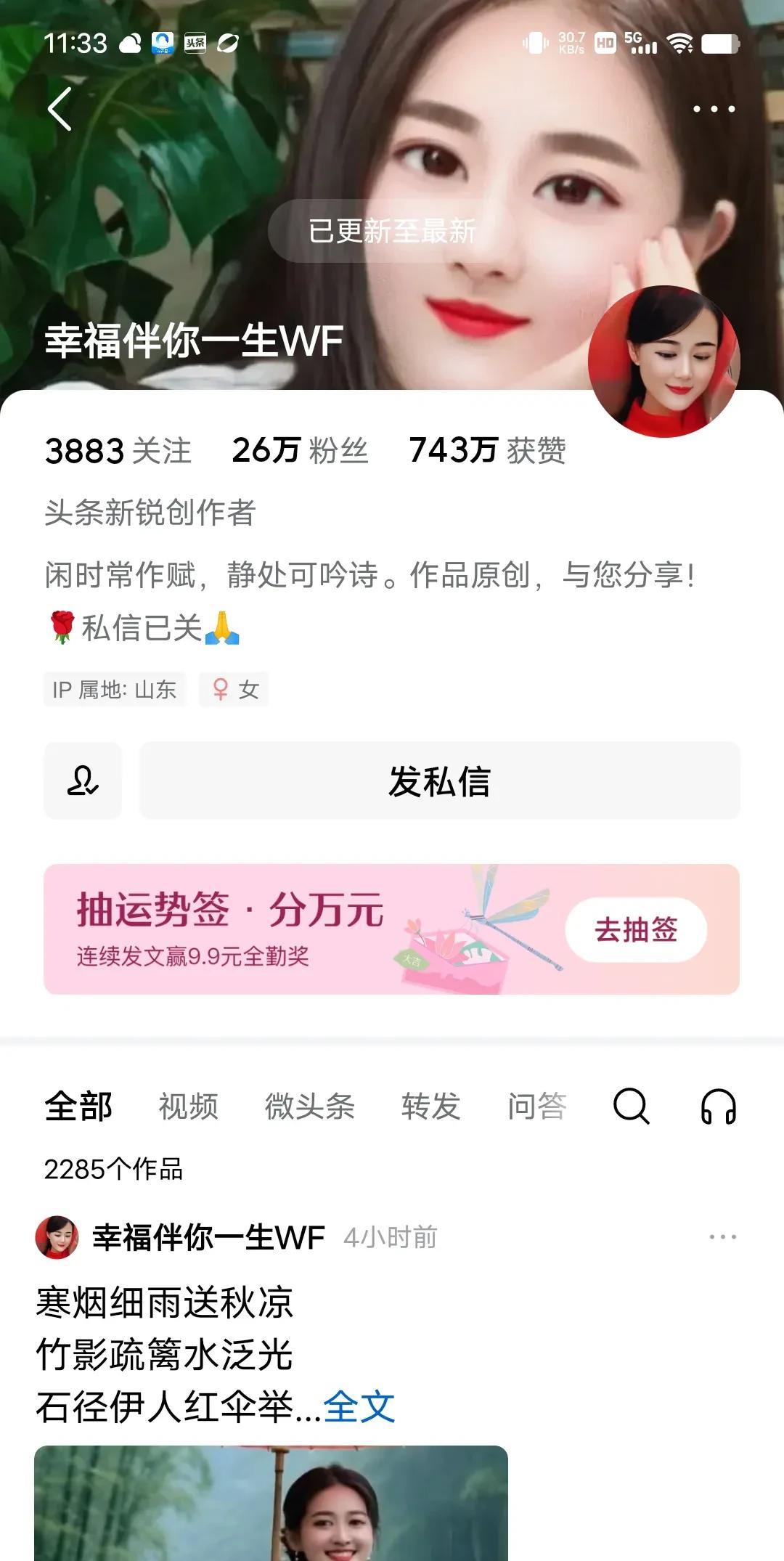 今天又是特别高兴的一天 为什么呢 因为我的超级偶像回关我了 一大早就跑来给我作品评论 太感谢她了 她那么忙都来给我多个作品评论 说明她真的看得起我 我拜的偶像的确没有拜错 总归一句话还是价值 我天天去写她去捧她 她哪有不感动的道理 我现在教大家一个方法 假如你喜欢一个女人 喜欢的不得了 所以你就天天去泡她 天天跑去和她套近乎 天天跑去感动她 一天两天一月两月 总归有一天她就是你的人了你信不信? 可能好多人说假如人家一直不感动呢 怎么办 连你自己都感动了 她还不感动 说明这个人脑子有问题 你说你拿来干嘛 不是她有问题而是你有问题 所以一句话 没有永远的朋友 只有价值才能永恒 你认同这种观点吗?#头号创作者激励计划#